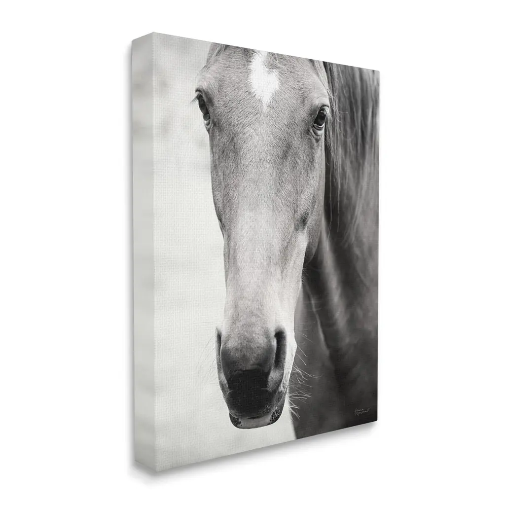 We create our stretched canvas to the highest standards. Using only the highest quality inks and canvas on Mimaki printers, we hand-cut and stretch each piece over a 1.5-inch thick wooden frame for hanging. As a result, the art comes ready to hang on the sturdy ledge with no installation required. Stupell Wall Art is made in the USA.Features: Dimensions: 16 x 1.5 x 20 InchesStretched Canvas Sizes Include Standard: 16 x 1.5 x 20 Large: 20 x 1.5 x 30 X-Large: 30 x 1.5 x 40 Oversized: 36 x 1.5 x 48Wall Art is Ready to Hang with Hardware Free Hanging. No installation required. For Easy Set Up Lean or Layer Artwork on Shelf or Against Wall.Our stretched canvas is created with the highest standards. We use only the highest quality inks and canvas on our in house Mimaki printers, and then hand cut and stretch each piece over a 1.5 inch thick wooden frame for hanging. Made In USA.Artwork Relates To: Animal, Horse, Mammal, Colt Horse, Stallion, Andalusian Horse, SnoutDesign by Laura Marshall