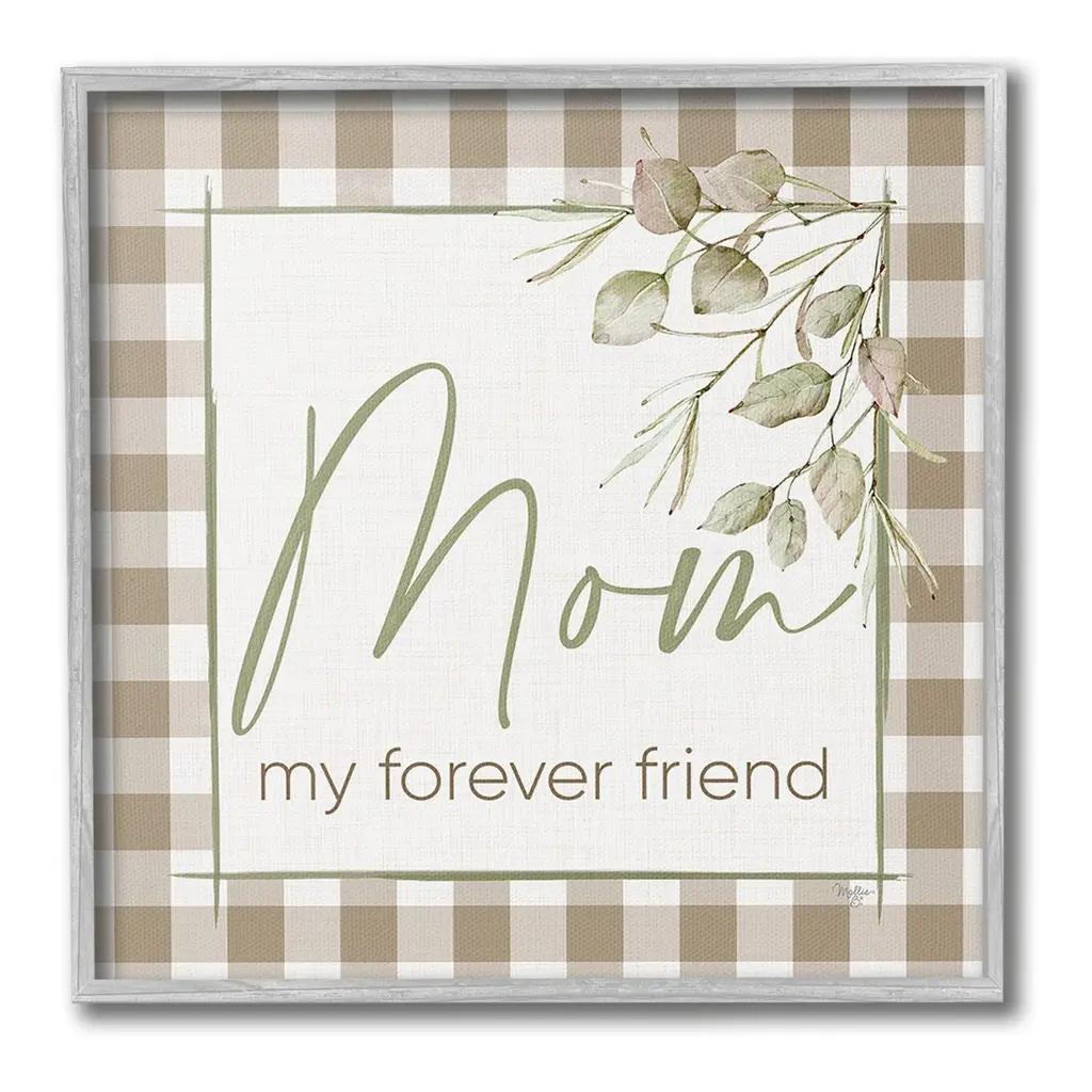 Add dimension to any room with our textured Framed Giclee Artwork. Our framed artwork is securely mounted into a 1.5-inch thick wood grain frame and ready to hang. Frames are available in three alluring styles: black, gray farmhouse and white. In addition, you should check out our oversized options if you want a statement piece. Stupell Wall Art is made in the USA.Features: Dimensions: 12 x 1.5 x 12 FramedFramed Giclee Product Sizes Include 12"x12", 17"x17", and 24"x24". Framed Giclee Products have a 1.5" Depth. Wall Art is Ready to Hang with Hardware Free Hanging. No installation required. For Easy Set Up Lean or Layer Artwork on Shelf or Against Wall.Our giclée prints are carefully mounted on a durable MDF backing, and then perfectly finished in a 1.5 inch thick woodgrain frame. Mounted frame colors include black, gray farmhouse and white. Made In USA.Artwork Relates To: Herbs, Plant, Botanical, Plaid, Gingham, Pattern, Mother's Day, Mom My Forever FriendDesign by Mollie B.