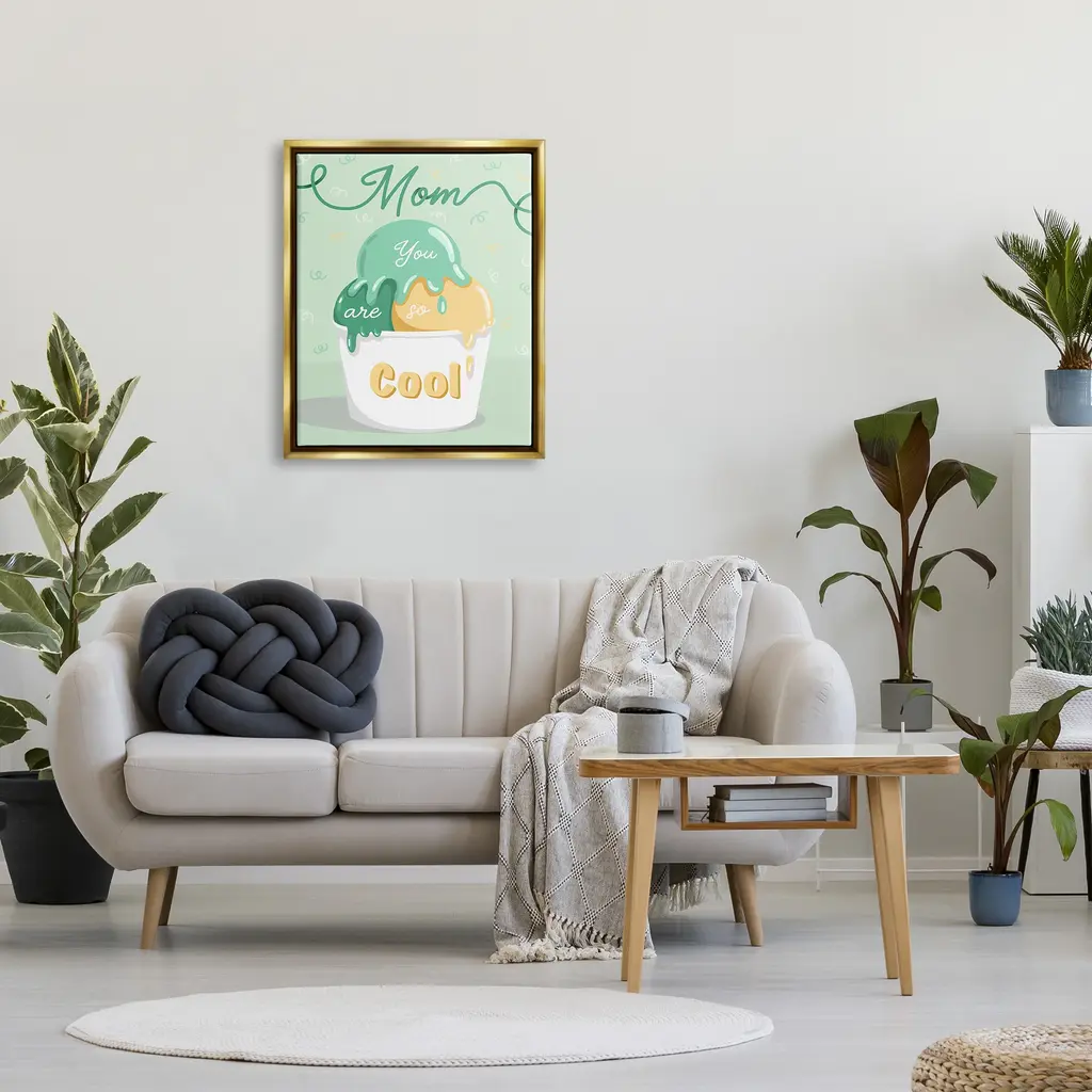 Elevate your home or office to the next level with Stupell Framed Floating Canvas Wall Art. Our premium hand-stretched canvas is mounted securely into a sturdy lightweight frame. The museum-style gap between the wrapped canvas and the box frame gives the illusion of floating artwork. Stupell Wall Art is made in the USA.Features: Dimensions: 17 x 1.7 x 21 Frame, 16 x 1.5 x 20 Canvas ArtFloating Frame Sizes Include Standard: 17 x 1.7 x 21 Oversized: 25 x 1.7 x 31Wall Art is Ready to Hang - No Installation or Hardware Needed. For Easy Set Up Lean or Layer Artwork on Shelf or Against Wall.Our elevated 1.7" Thick Floating Frame is the perfect complement to our canvas style Wall Art. We use only the highest quality inks in house with industry leading printing solutions. Canvas is hand stretched over a durable wood foundation and then mounted securly into a Modern Box Frame. Made in the USA.Artwork Relates To: Dessert, Food, Ice Cream, Green, Mother's Day, Mom You Are So CoolDesign by Dominika Godette
