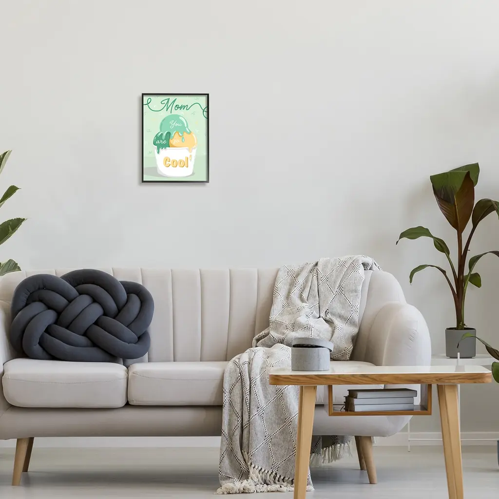 Add dimension to any room with our textured Framed Giclee Artwork. Our framed artwork is securely mounted into a 1.5-inch thick wood grain frame and ready to hang. Frames are available in three alluring styles: black, gray farmhouse and white. In addition, you should check out our oversized options if you want a statement piece. Stupell Wall Art is made in the USA.Features: Dimensions: 11 x 1.5 x 14 FramedFramed Giclee Sizes Include Standard: 11 x 1.5 x 14 Large: 16 x 1.5 x 20 Oversized: 24 x 1.5 x 30Wall Art is Ready to Hang - No Installation or Hardware Needed. For Easy Set Up Lean or Layer Artwork on Shelf or Against Wall.Our giclée prints are carefully mounted on a durable MDF backing, and then perfectly finished in a 1.5 inch thick woodgrain frame. Mounted frame colors include black, gray farmhouse and white. Made In USA.Artwork Relates To: Dessert, Food, Ice Cream, Green, Mother's Day, Mom You Are So CoolDesign by Dominika Godette