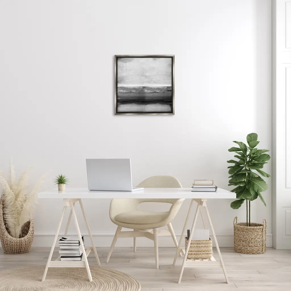Elevate your home or office to the next level with Stupell Framed Floating Canvas Wall Art. Our premium hand-stretched canvas is mounted securely into a sturdy lightweight frame. The museum-style gap between the wrapped canvas and the box frame gives the illusion of floating artwork. Stupell Wall Art is made in the USA.Features: Dimensions: 18 x 1.7 x 18 Frame, 17 x 1.5 x 17 Canvas ArtFloating Frame Canvas Products are available in sizes 18"x18" and 25"x25". All Floating Frame Canvas Products have a 1.7" Depth.Wall Art is Ready to Hang with Hardware Free Hanging. No Installation required. For Easy Set Up Lean or Layer Artwork on Shelf or Against Wall. Artwork is Permently Fixed into the Frame.Our elevated 1.7" Thick Floating Frame is the perfect complement to our canvas style Wall Art. We use only the highest quality inks in house with industry leading printing solutions. Canvas is hand stretched over a durable wood foundation and then mounted securly into a Modern Box Frame. Made in the USA.Artwork Relates To: Abstract, Landscape, Beach, Ocean, MonochromeDesign by Taylor Hamilton