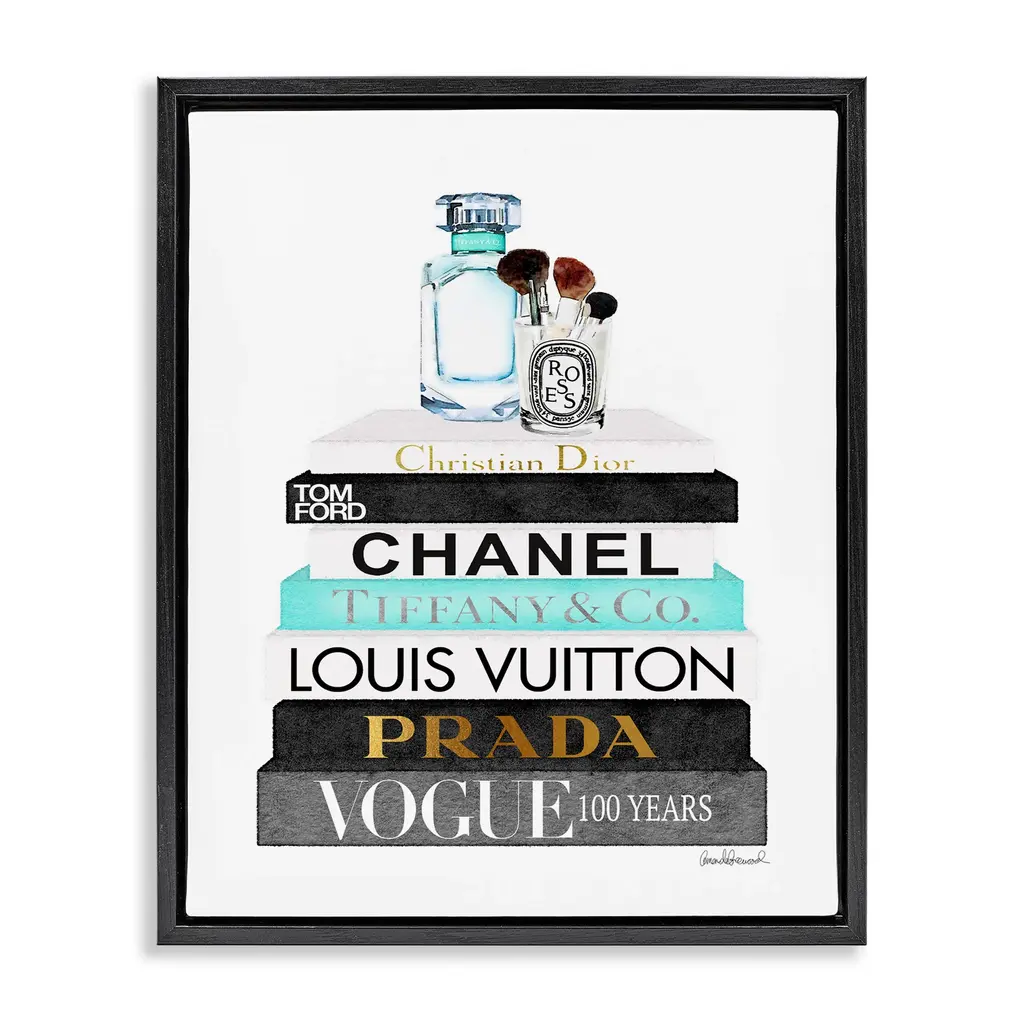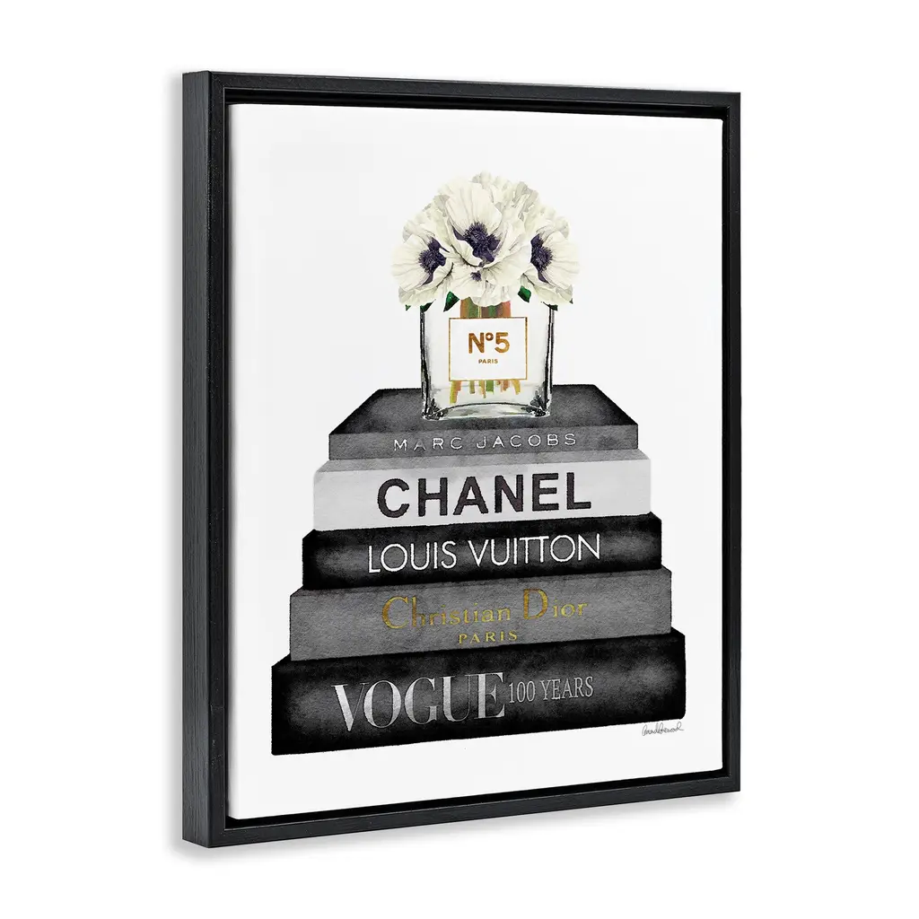 Stupell Monochrome Fashion Designer Bookstack Framed Floater Canvas Wall Art Design By Amanda Greenwood - 25 X 31 - Black