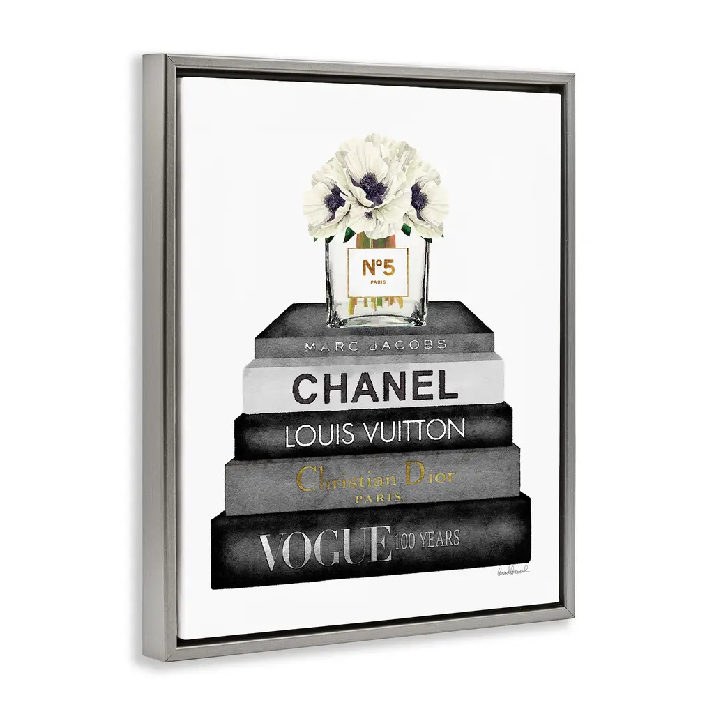 Stupell Monochrome Fashion Designer Bookstack Framed Floater Canvas Wall Art Design By Amanda Greenwood - 25 X 31 - Grey