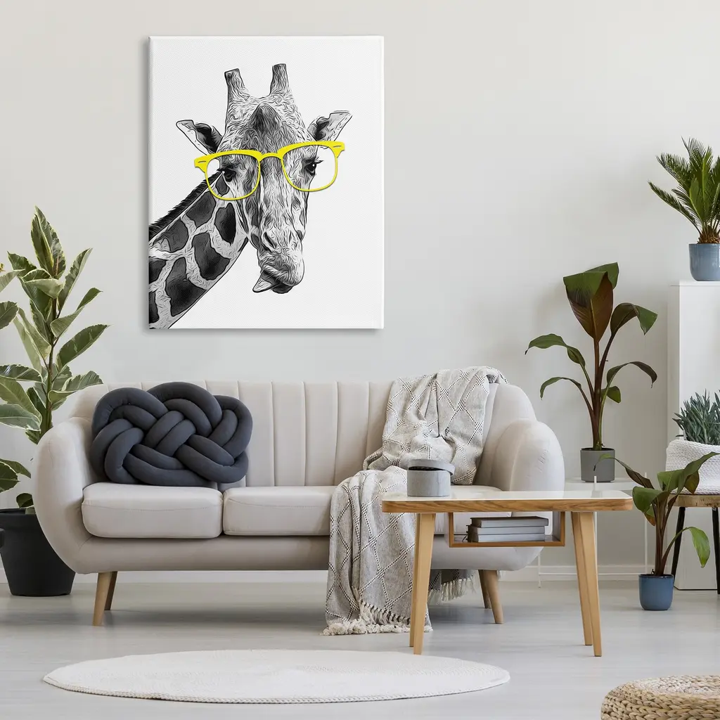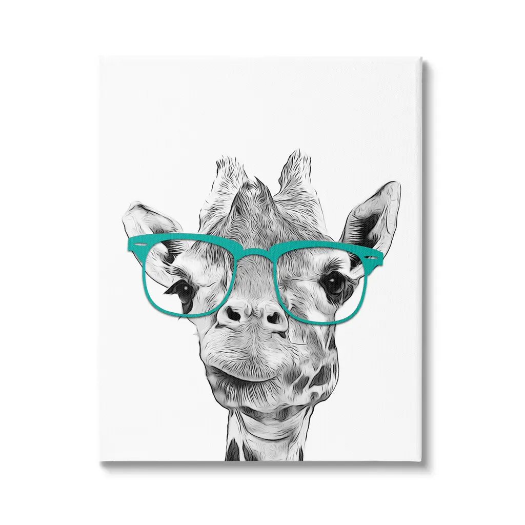 Stupell Monochrome Giraffe Portrait Wearing Red Glasses Design Canvas Wall Art - 16 X 20