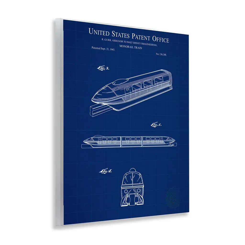 Stupell Monorail Train Blueprint Wall Plaque Art Design By Karl Hronek - 11 X 14