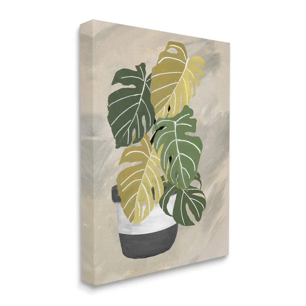 Stupell Monstera Plant Black Stripe Planter Abstract Neutral Background Canvas Wall Art - Green - 16 X 20