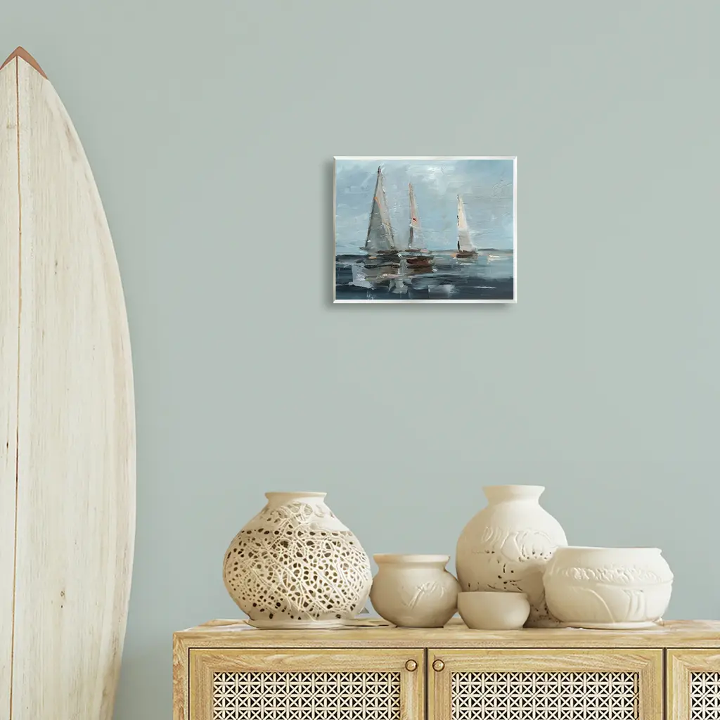 Stupell Moody Sailboats Maritime Wall Plaque Art Design By Ethan Harper - 14 X 11