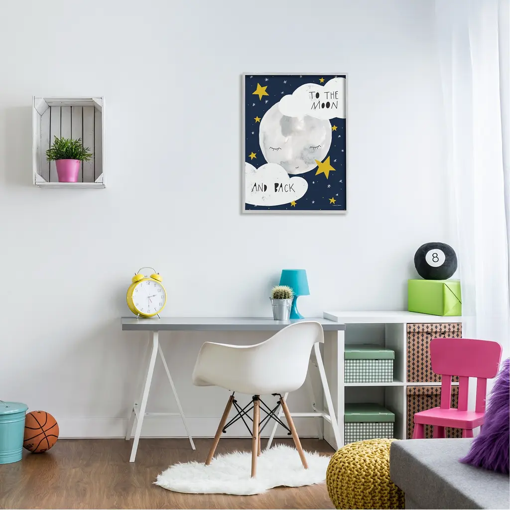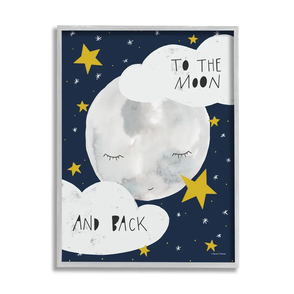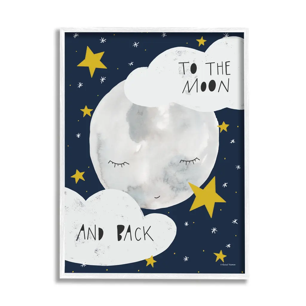 Stupell Moon And Back Lovable Moon Smiling Clouds Stars Framed Wall Art - Yellow - 11 X 14 - Black