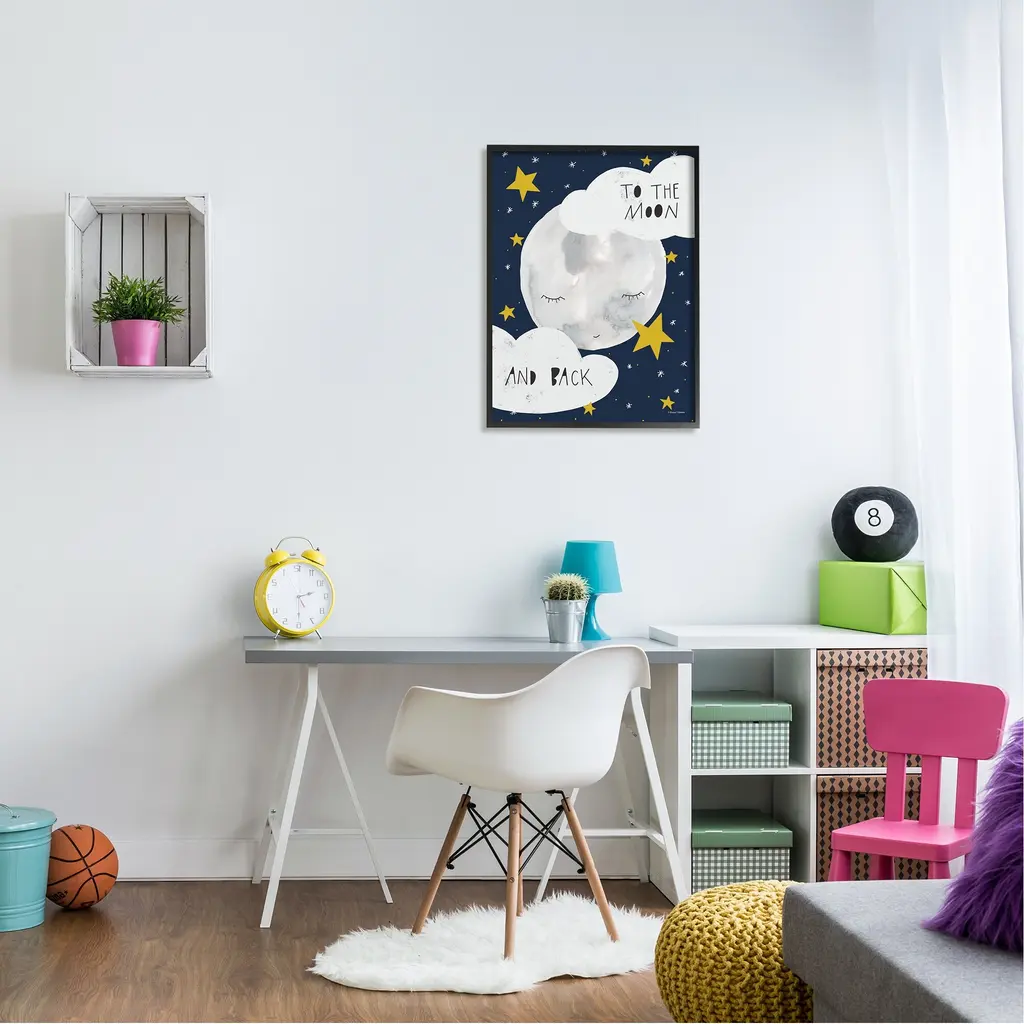 Stupell Moon And Back Lovable Moon Smiling Clouds Stars Framed Wall Art - Yellow - 24 X 30 - Black