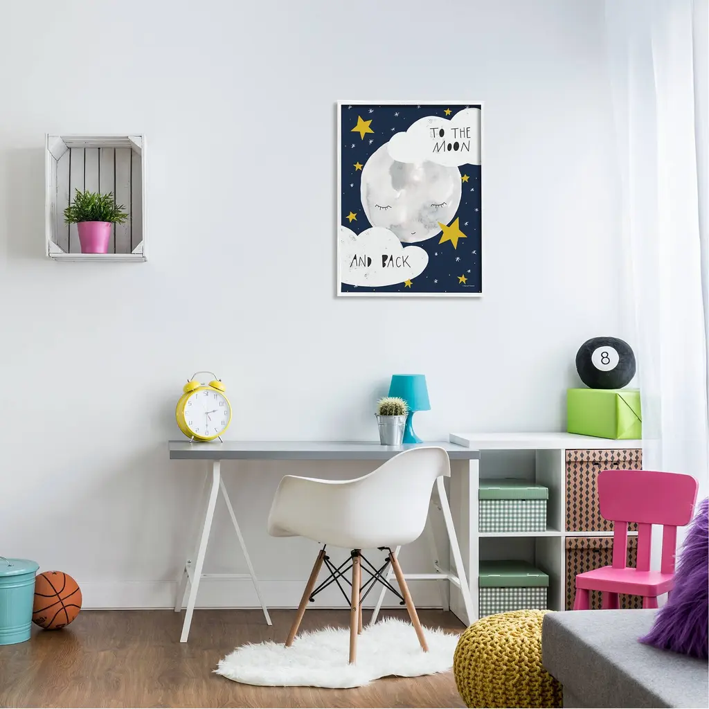 Stupell Moon And Back Lovable Moon Smiling Clouds Stars Framed Wall Art - Yellow - 24 X 30 - White