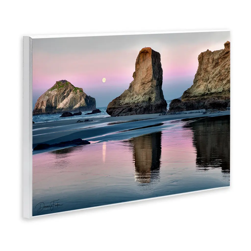 Our wall plaques start as high-quality lithograph prints mounted on durable 0.5-inch thick MDF wood. Each piece is hand finished and comes with a fresh layer of white foil on the sides to give it a crisp, clean look. Plaques arrive ready to hang without installation and come with removable plastic corners to keep them from damage in transit. Stupell Wall Art is made in the USA.Features: Dimensions: 15 x 0.5 x 10 InchesWall Plaque Product Sizes Include 15"x10" and 19"x13". All wall plaque products have a 0.5" Depth. Wall Art is Ready to Hang with Hardware Free Hanging. No installation required. For Easy Set Up Lean or Layer Artwork on Shelf or Against Wall.All of our wall plaques start off as high quality lithograph prints that are then mounted on durable 0.5 inch thick MDF wood. Each piece is hand finished and comes with a fresh layer of foil on the sides to give it a crisp clean look. Made In USA.Artwork Relates To: Nature, Promontory, Water, Cliff, Landscape, Sea, Beach, Coast, Shoreline, Scenery, MoonDesign by Dennis Frates