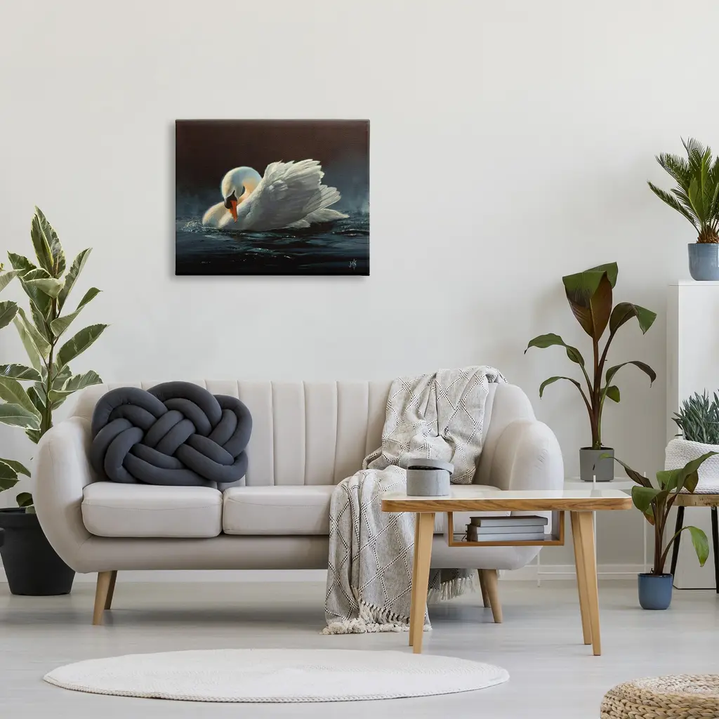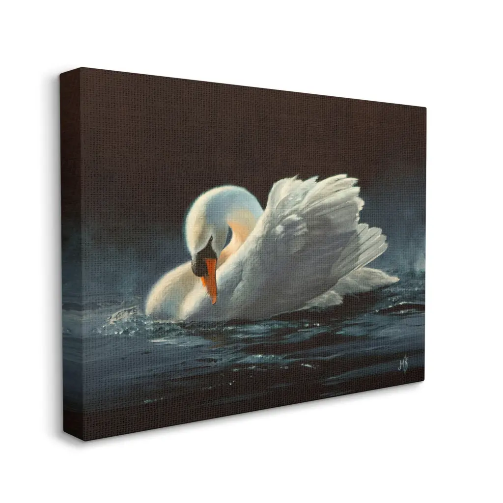We create our stretched canvas to the highest standards. Using only the highest quality inks and canvas on Mimaki printers, we hand-cut and stretch each piece over a 1.5-inch thick wooden frame for hanging. As a result, the art comes ready to hang on the sturdy ledge with no installation required. Stupell Wall Art is made in the USA.Features: Dimensions: 20 x 1.5 x 16 InchesStretched Canvas Sizes Include Standard: 20 x 1.5 x 16 Large: 30 x 1.5 x 20 X-Large: 40 x 1.5 x 30 Oversized: 48 x 1.5 x 36Wall Art is Ready to Hang with Hardware Free Hanging. No installation required. For Easy Set Up Lean or Layer Artwork on Shelf or Against Wall.Our stretched canvas is created with the highest standards. We use only the highest quality inks and canvas on our in house Mimaki printers, and then hand cut and stretch each piece over a 1.5 inch thick wooden frame for hanging. Made In USA.Artwork Relates To: Animal, Bird, Swan, Beak, Painting, Pond, LakeDesign by Mark Kelso