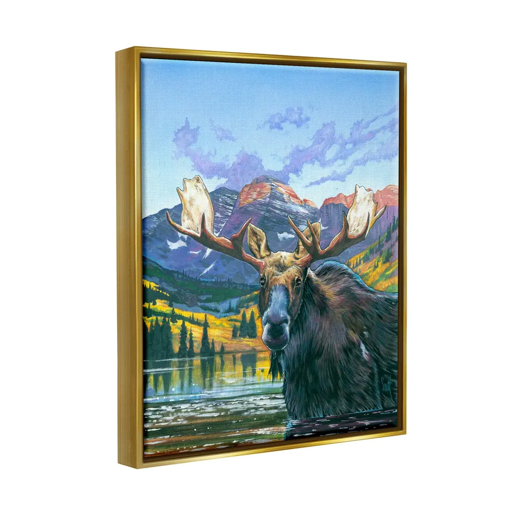 Elevate your home or office to the next level with Stupell Framed Floating Canvas Wall Art. Our premium hand-stretched canvas is mounted securely into a sturdy lightweight frame. The museum-style gap between the wrapped canvas and the box frame gives the illusion of floating artwork. Stupell Wall Art is made in the USA.Features: Dimensions: 17 x 1.7 x 21 Frame, 16 x 1.5 x 20 Canvas ArtFloating Frame Sizes Include Standard: 17 x 1.7 x 21 Oversized: 25 x 1.7 x 31Wall Art is Ready to Hang with Hardware Free Hanging. No installation required. For Easy Set Up Lean or Layer Artwork on Shelf or Against Wall.Our elevated 1.7" Thick Floating Frame is the perfect complement to our canvas style Wall Art. We use only the highest quality inks in house with industry leading printing solutions. Canvas is hand stretched over a durable wood foundation and then mounted securly into a Modern Box Frame. Made in the USA.Artwork Relates To: Animal, Mammal, Wildlife, Antler, Tree, Nature, Wilderness, Mountain, Mountain Range, Moose, Land, Woodland, RiverDesign by Scott Westmoreland