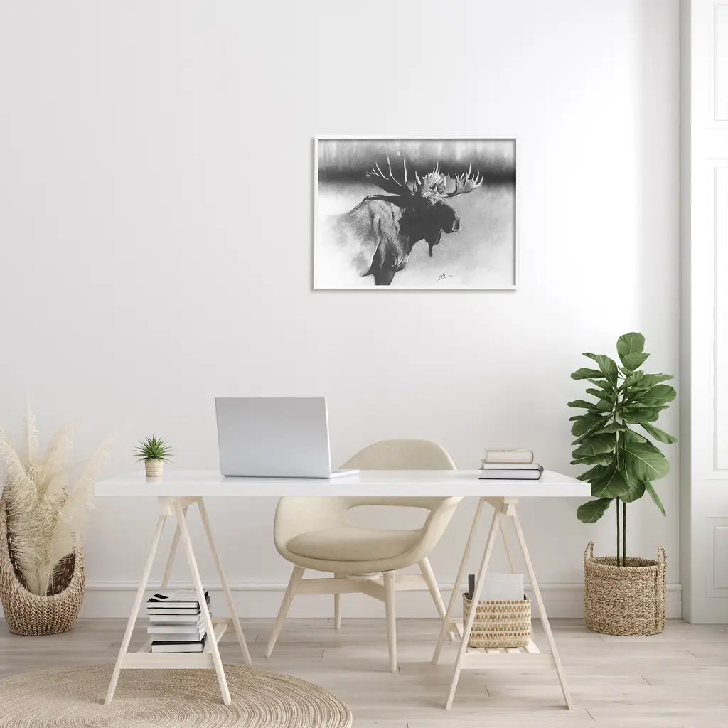 Stupell Moose In Rustic Forest Realistic Pencil Drawing Framed Wall Art - Grey - 24 X 30 - Black