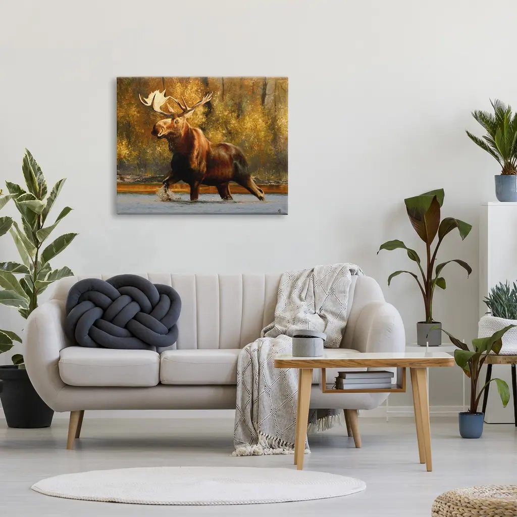 We create our stretched canvas to the highest standards. Using only the highest quality inks and canvas on Mimaki printers, we hand-cut and stretch each piece over a 1.5-inch thick wooden frame for hanging. As a result, the art comes ready to hang on the sturdy ledge with no installation required. Stupell Wall Art is made in the USA.Features: Dimensions: 20 x 1.5 x 16 InchesStretched Canvas Sizes Include Standard: 20 x 1.5 x 16 Large: 30 x 1.5 x 20 X-Large: 40 x 1.5 x 30 Oversized: 48 x 1.5 x 36Wall Art is Ready to Hang with Hardware Free Hanging. No installation required. For Easy Set Up Lean or Layer Artwork on Shelf or Against Wall.Our stretched canvas is created with the highest standards. We use only the highest quality inks and canvas on our in house Mimaki printers, and then hand cut and stretch each piece over a 1.5 inch thick wooden frame for hanging. Made In USA.Artwork Relates To: Animal, Mammal, Moose, Wildlife, Landscape, RiverDesign by Mark Kelso