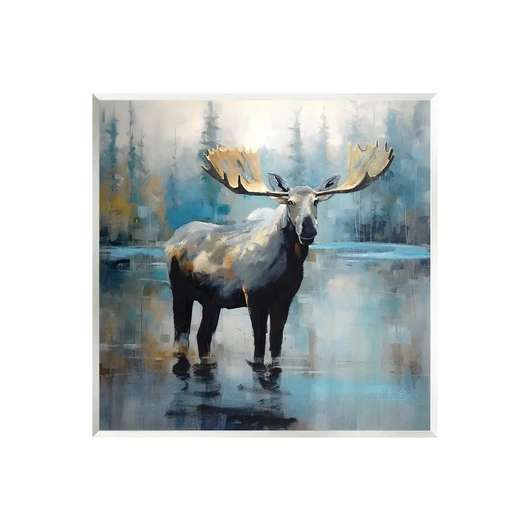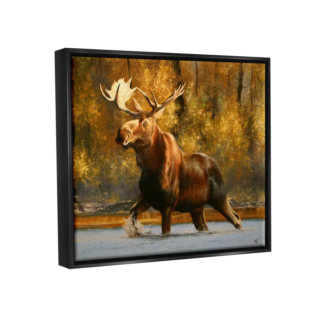 Elevate your home or office to the next level with Stupell Framed Floating Canvas Wall Art. Our premium hand-stretched canvas is mounted securely into a sturdy lightweight frame. The museum-style gap between the wrapped canvas and the box frame gives the illusion of floating artwork. Stupell Wall Art is made in the USA.Features: Dimensions: 21 x 1.7 x 17 Frame, 20 x 1.5 x 16 Canvas ArtFloating Frame Sizes Include Standard: 21 x 1.7 x 17 Oversized: 31 x 1.7 x 25Wall Art is Ready to Hang with Hardware Free Hanging. No installation required. For Easy Set Up Lean or Layer Artwork on Shelf or Against Wall.Our elevated 1.7" Thick Floating Frame is the perfect complement to our canvas style Wall Art. We use only the highest quality inks in house with industry leading printing solutions. Canvas is hand stretched over a durable wood foundation and then mounted securly into a Modern Box Frame. Made in the USA.Artwork Relates To: Animal, Mammal, Moose, Wildlife, Landscape, RiverDesign by Mark Kelso