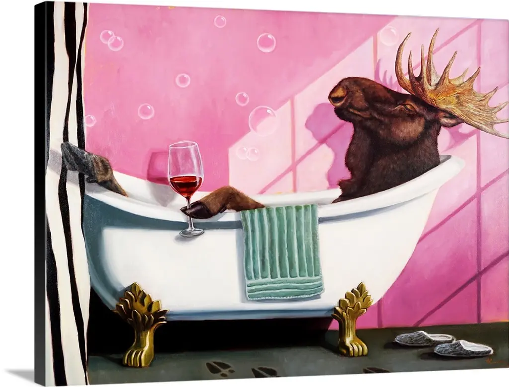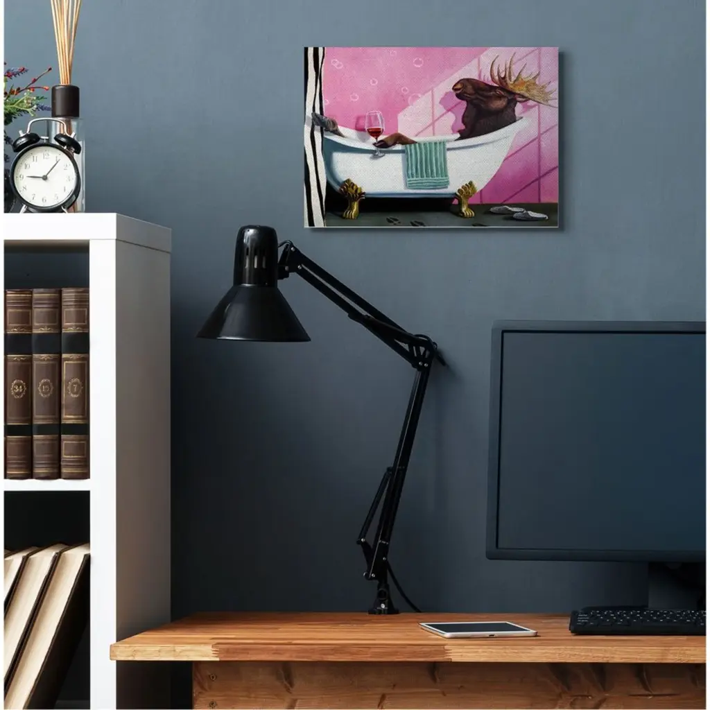 Stupell Moose With Wine Bathroom Claw Tub Relaxation Canvas Wall Art - 16 X 20