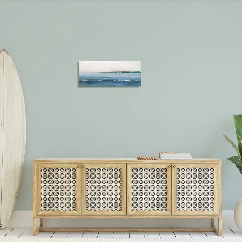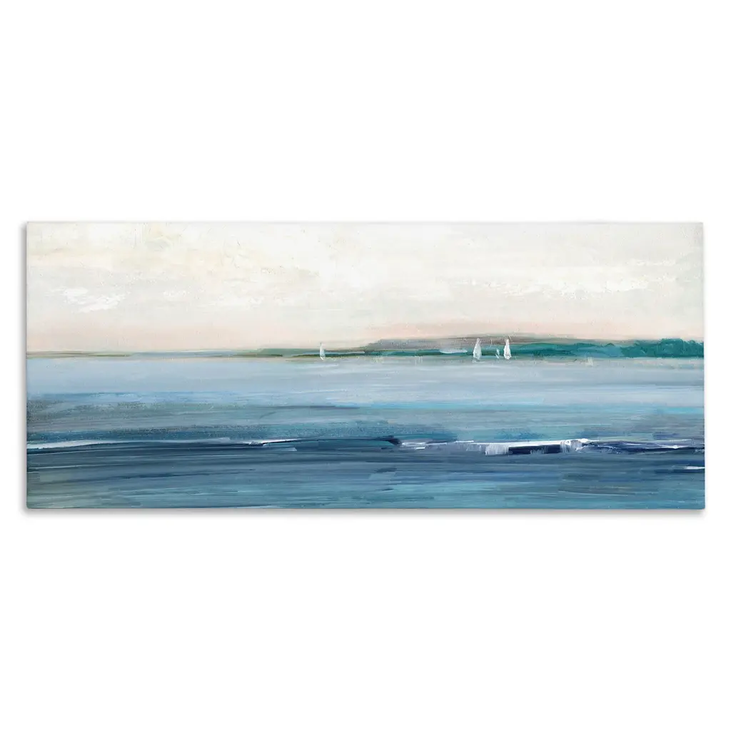 Stupell Morning Sky Abstract Nautical Ocean Landscape Distant Boats Canvas Wall Art - Blue - 24 X 10