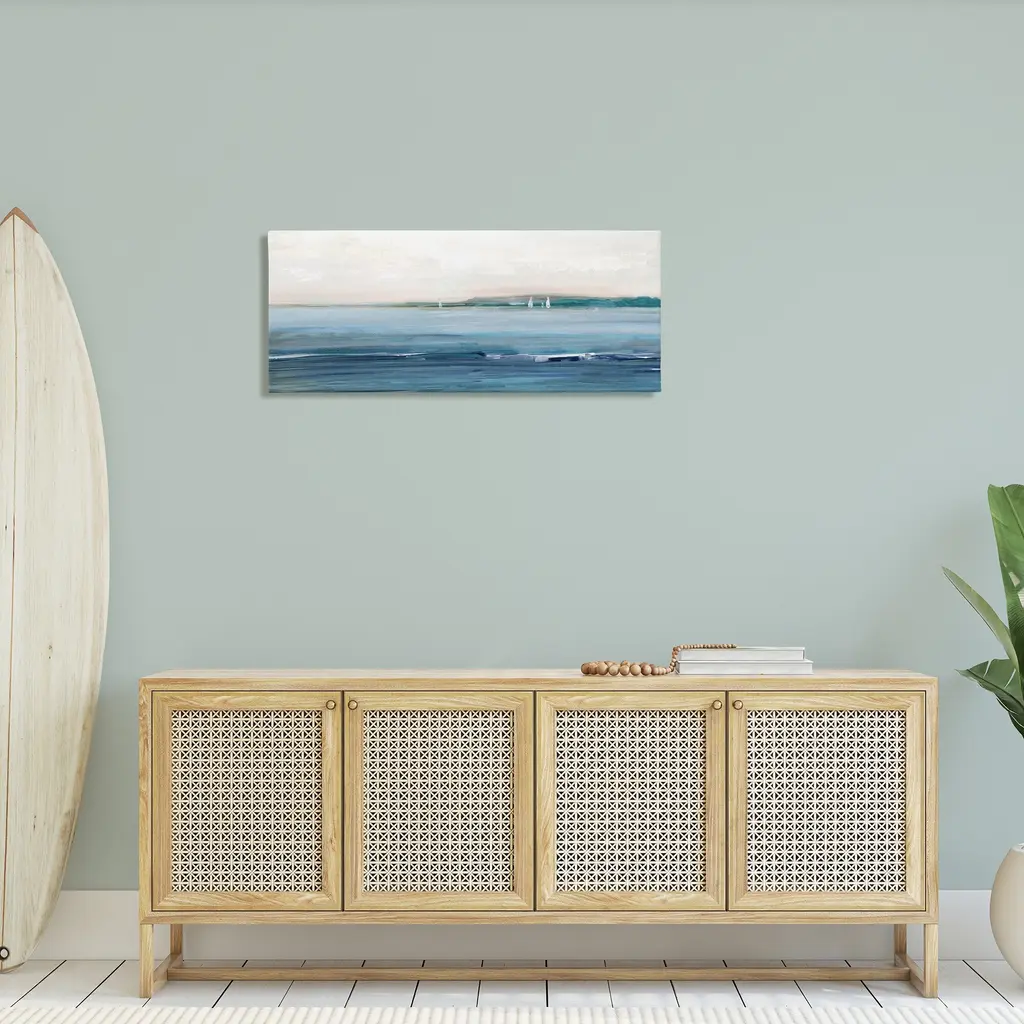 Stupell Morning Sky Abstract Nautical Ocean Landscape Distant Boats Canvas Wall Art - Blue - 40 X 17