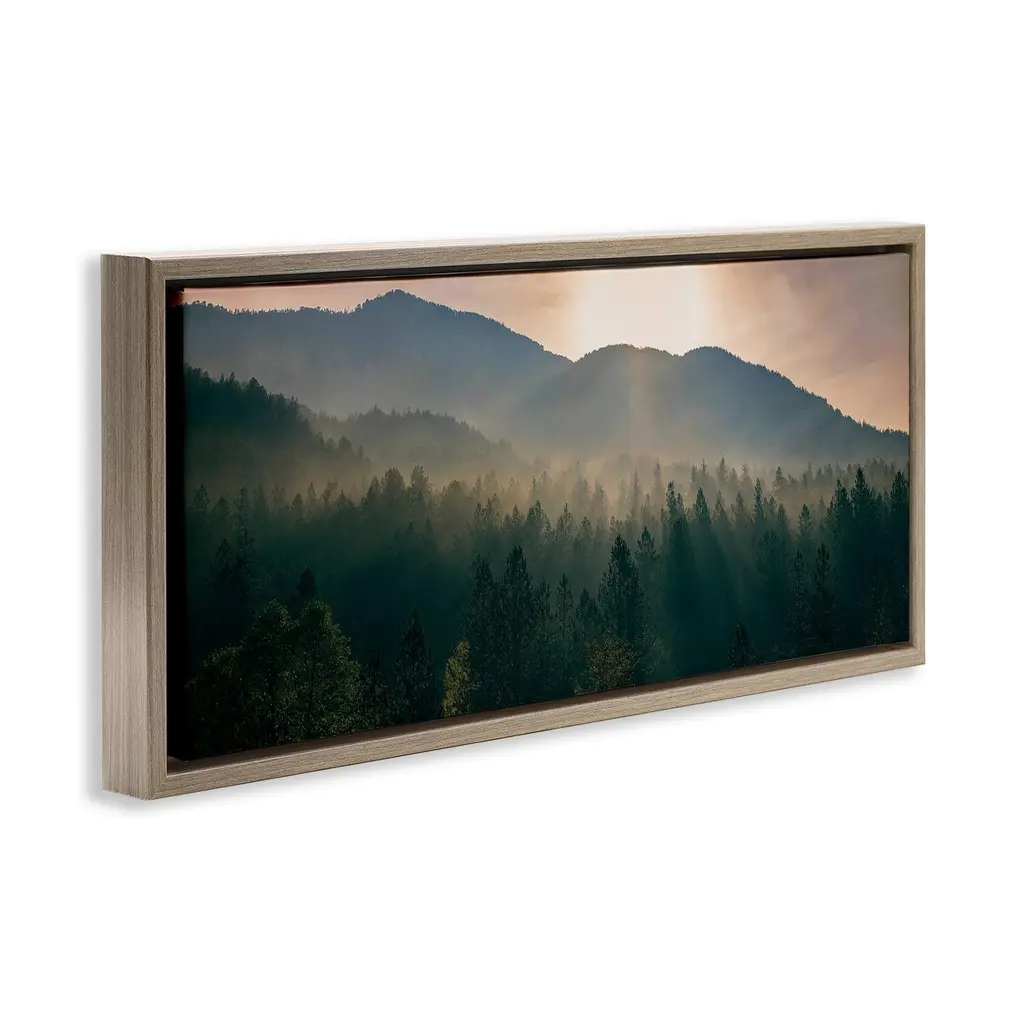 Elevate your home or office to the next level with Stupell Framed Floating Canvas Wall Art. Our premium hand-stretched canvas is mounted securely into a sturdy lightweight frame. The museum-style gap between the wrapped canvas and the box frame gives the illusion of floating artwork. Stupell Wall Art is made in the USA.Features: Dimensions: 25 x 1.7 x 11 Frame, 24 x 1.5 x 10 Canvas ArtFloating Frame Canvas Products are available in sizes 25"x11" and 31"x14". All Floating Frame Canvas Products have a 1.7" Depth.Wall Art is Ready to Hang with Hardware Free Hanging. No Installation required. For Easy Set Up Lean or Layer Artwork on Shelf or Against Wall. Artwork is Permently Fixed into the Frame.Our elevated 1.7" Thick Floating Frame is the perfect complement to our canvas style Wall Art. We use only the highest quality inks in house with industry leading printing solutions. Canvas is hand stretched over a durable wood foundation and then mounted securly into a Modern Box Frame. Made in the USA.Artwork Relates To: Landscape, Mountain, Sunrise, Sunset, PhotographyDesign by Dora Artemiadi