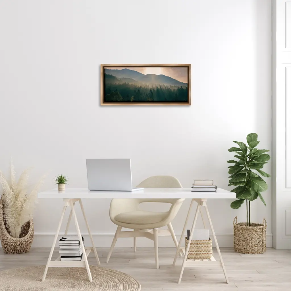 Elevate your home or office to the next level with Stupell Framed Floating Canvas Wall Art. Our premium hand-stretched canvas is mounted securely into a sturdy lightweight frame. The museum-style gap between the wrapped canvas and the box frame gives the illusion of floating artwork. Stupell Wall Art is made in the USA.Features: Dimensions: 25 x 1.7 x 11 Frame, 24 x 1.5 x 10 Canvas ArtFloating Frame Canvas Products are available in sizes 25"x11" and 31"x14". All Floating Frame Canvas Products have a 1.7" Depth.Wall Art is Ready to Hang with Hardware Free Hanging. No Installation required. For Easy Set Up Lean or Layer Artwork on Shelf or Against Wall. Artwork is Permently Fixed into the Frame.Our elevated 1.7" Thick Floating Frame is the perfect complement to our canvas style Wall Art. We use only the highest quality inks in house with industry leading printing solutions. Canvas is hand stretched over a durable wood foundation and then mounted securly into a Modern Box Frame. Made in the USA.Artwork Relates To: Landscape, Mountain, Sunrise, Sunset, PhotographyDesign by Dora Artemiadi