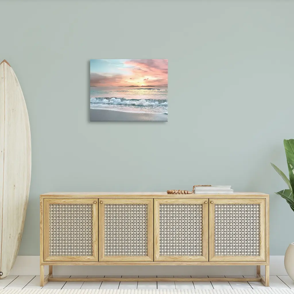 Stupell Morning Sunrise Beach Landscape Distant Mountains Rolling Tide Canvas Wall Art - Orange - 30 X 24