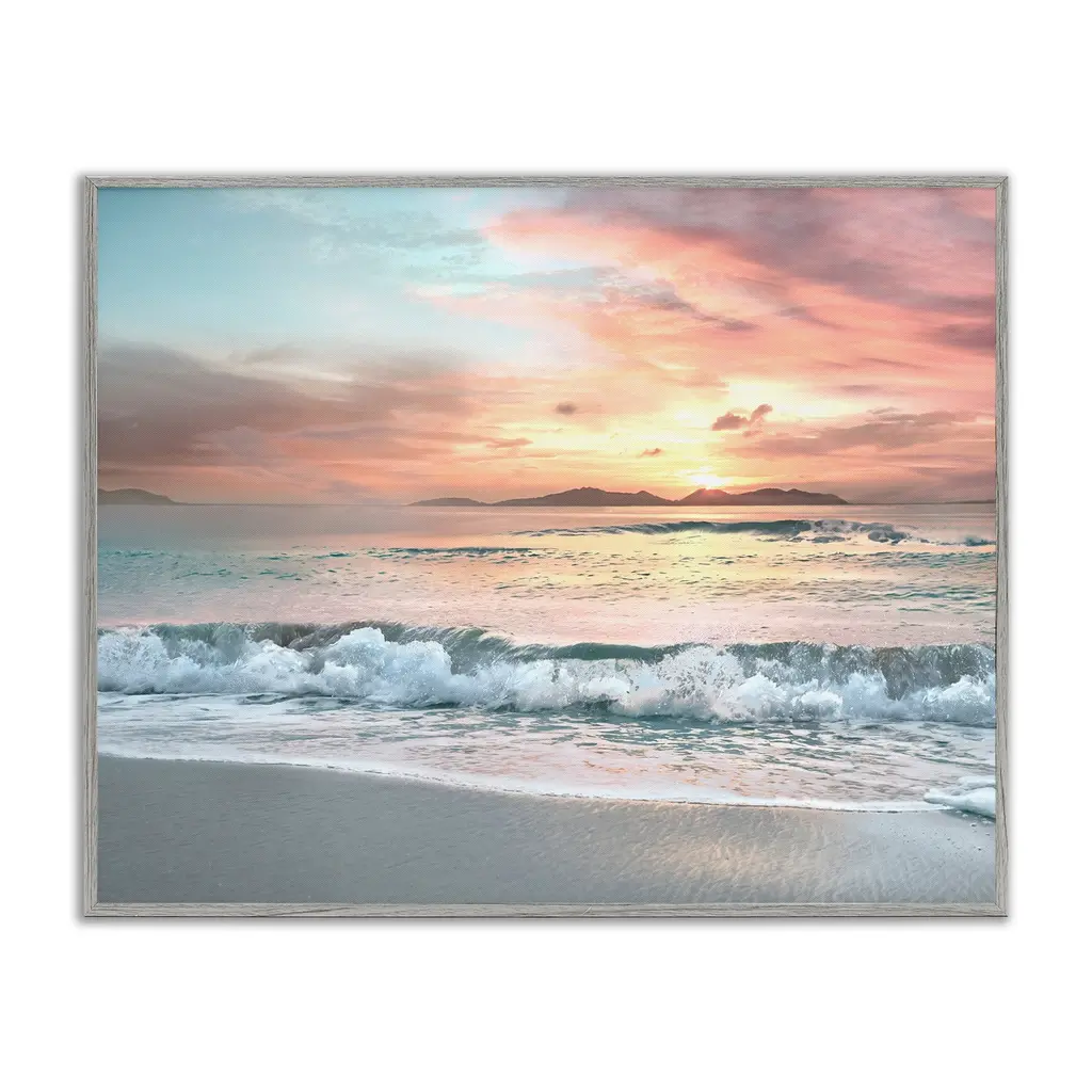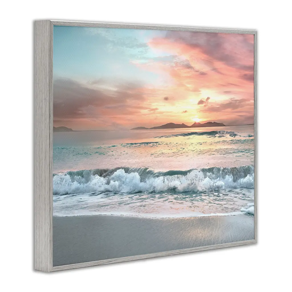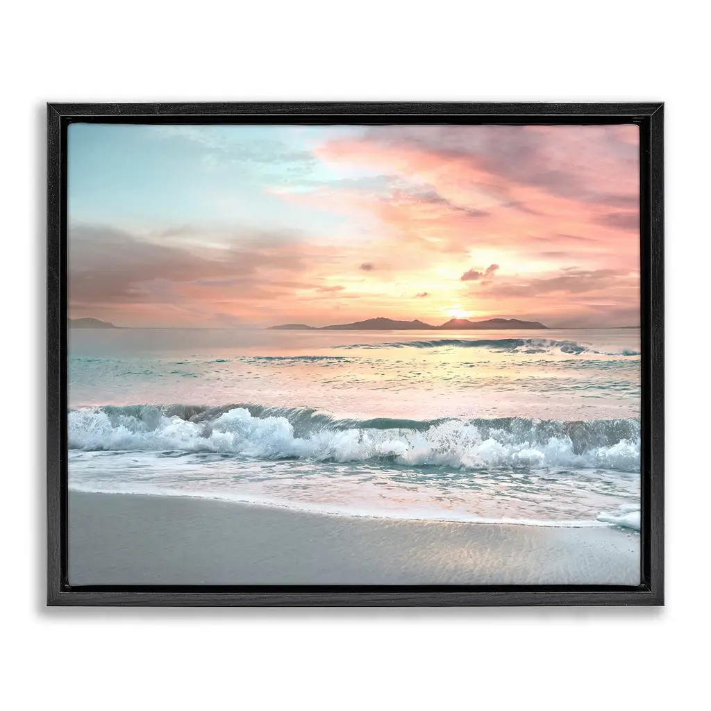 Stupell Morning Sunrise Beach Landscape Distant Mountains Rolling Tide Framed Wall Art - 14 X 11 - Grey
