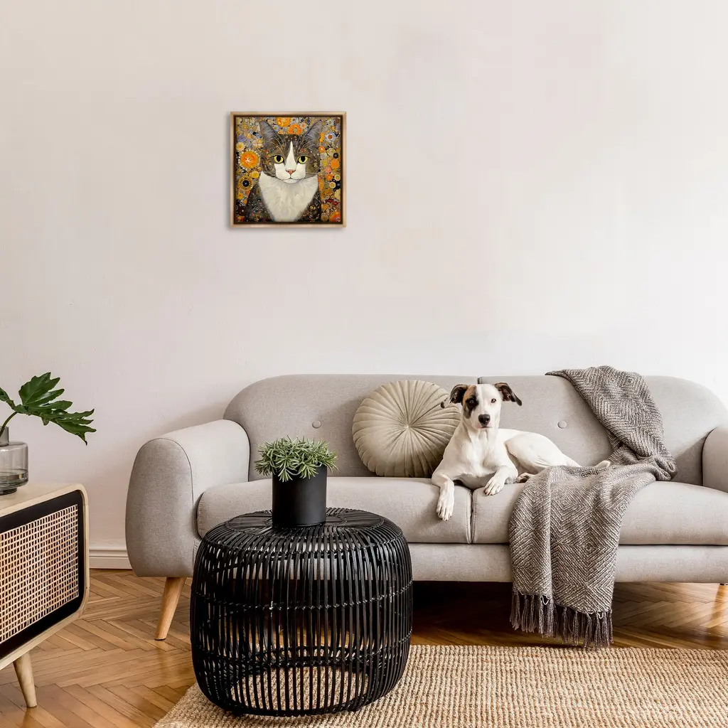 Elevate your home or office to the next level with Stupell Framed Floating Canvas Wall Art. Our premium hand-stretched canvas is mounted securely into a sturdy lightweight frame. The museum-style gap between the wrapped canvas and the box frame gives the illusion of floating artwork. Stupell Wall Art is made in the USA.Features: Dimensions: 18 x 1.7 x 18 Frame, 17 x 1.5 x 17 Canvas ArtFloating Frame Canvas Products are available in sizes 18"x18" and 25"x25". All Floating Frame Canvas Products have a 1.7" Depth.Wall Art is Ready to Hang with Hardware Free Hanging. No Installation required. For Easy Set Up Lean or Layer Artwork on Shelf or Against Wall. Artwork is Permently Fixed into the Frame.Our elevated 1.7" Thick Floating Frame is the perfect complement to our canvas style Wall Art. We use only the highest quality inks in house with industry leading printing solutions. Canvas is hand stretched over a durable wood foundation and then mounted securly into a Modern Box Frame. Made in the USA.Artwork Relates To: Modern, Animal, Cat, Mammal, Pet, Pattern, Applique, Abstract, Mosaic, GeometricDesign by RB