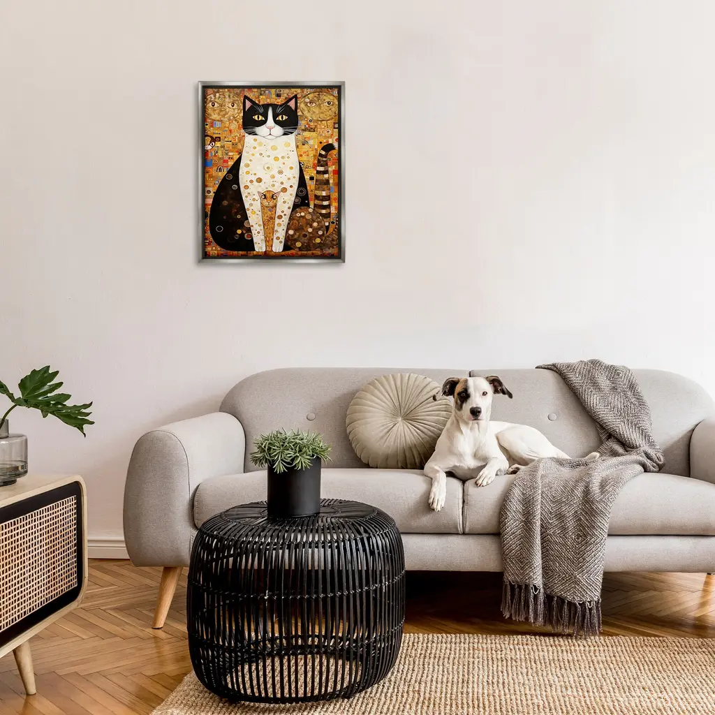 Elevate your home or office to the next level with Stupell Framed Floating Canvas Wall Art. Our premium hand-stretched canvas is mounted securely into a sturdy lightweight frame. The museum-style gap between the wrapped canvas and the box frame gives the illusion of floating artwork. Stupell Wall Art is made in the USA.Features: Dimensions: 17 x 1.7 x 21 Frame, 16 x 1.5 x 20 Canvas ArtFloating Frame Canvas Products are available in sizes 17"x21" and 25"x31". All Floating Frame Canvas Products have a 1.7" Depth.Wall Art is Ready to Hang with Hardware Free Hanging. No Installation required. For Easy Set Up Lean or Layer Artwork on Shelf or Against Wall. Artwork is Permently Fixed into the Frame.Our elevated 1.7" Thick Floating Frame is the perfect complement to our canvas style Wall Art. We use only the highest quality inks in house with industry leading printing solutions. Canvas is hand stretched over a durable wood foundation and then mounted securly into a Modern Box Frame. Made in the USA.Artwork Relates To: Modern, Animal, Cat, Mammal, Pet, Pattern, Geometric, Collage, MosaicDesign by RB