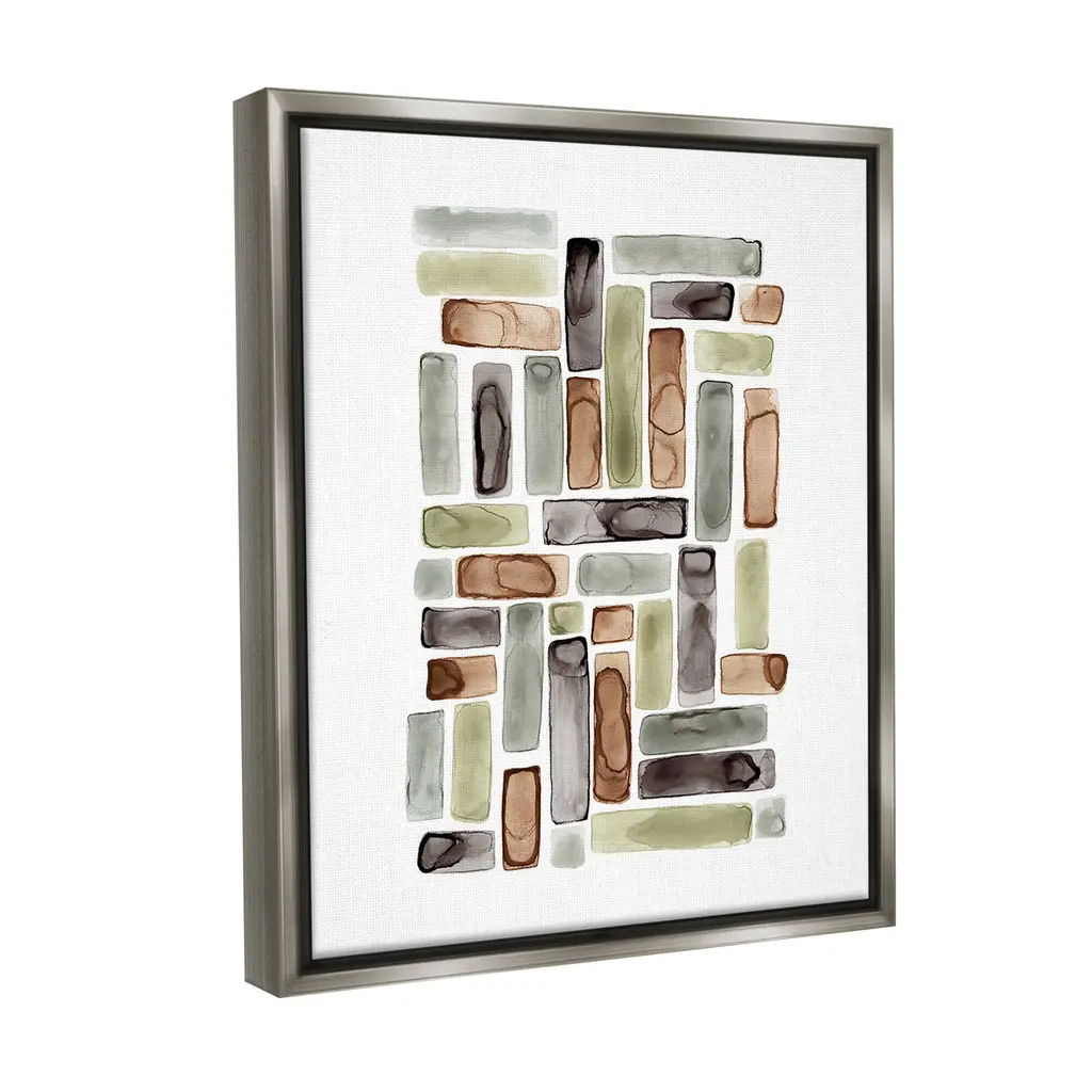 Elevate your home or office to the next level with Stupell Framed Floating Canvas Wall Art. Our premium hand-stretched canvas is mounted securely into a sturdy lightweight frame. The museum-style gap between the wrapped canvas and the box frame gives the illusion of floating artwork. Stupell Wall Art is made in the USA.Features: Dimensions: 17 x 1.7 x 21 Frame, 16 x 1.5 x 20 Canvas ArtFloating Frame Canvas Products are available in sizes 17"x21" and 25"x31". All Floating Frame Canvas Products have a 1.7" Depth.Wall Art is Ready to Hang with Hardware Free Hanging. No Installation required. For Easy Set Up Lean or Layer Artwork on Shelf or Against Wall. Artwork is Permently Fixed into the Frame.Our elevated 1.7" Thick Floating Frame is the perfect complement to our canvas style Wall Art. We use only the highest quality inks in house with industry leading printing solutions. Canvas is hand stretched over a durable wood foundation and then mounted securly into a Modern Box Frame. Made in the USA.Artwork Relates To: Abstract, Modern, Contemporary, Neutral, Geometric, ShapesDesign by Lisa Nohren