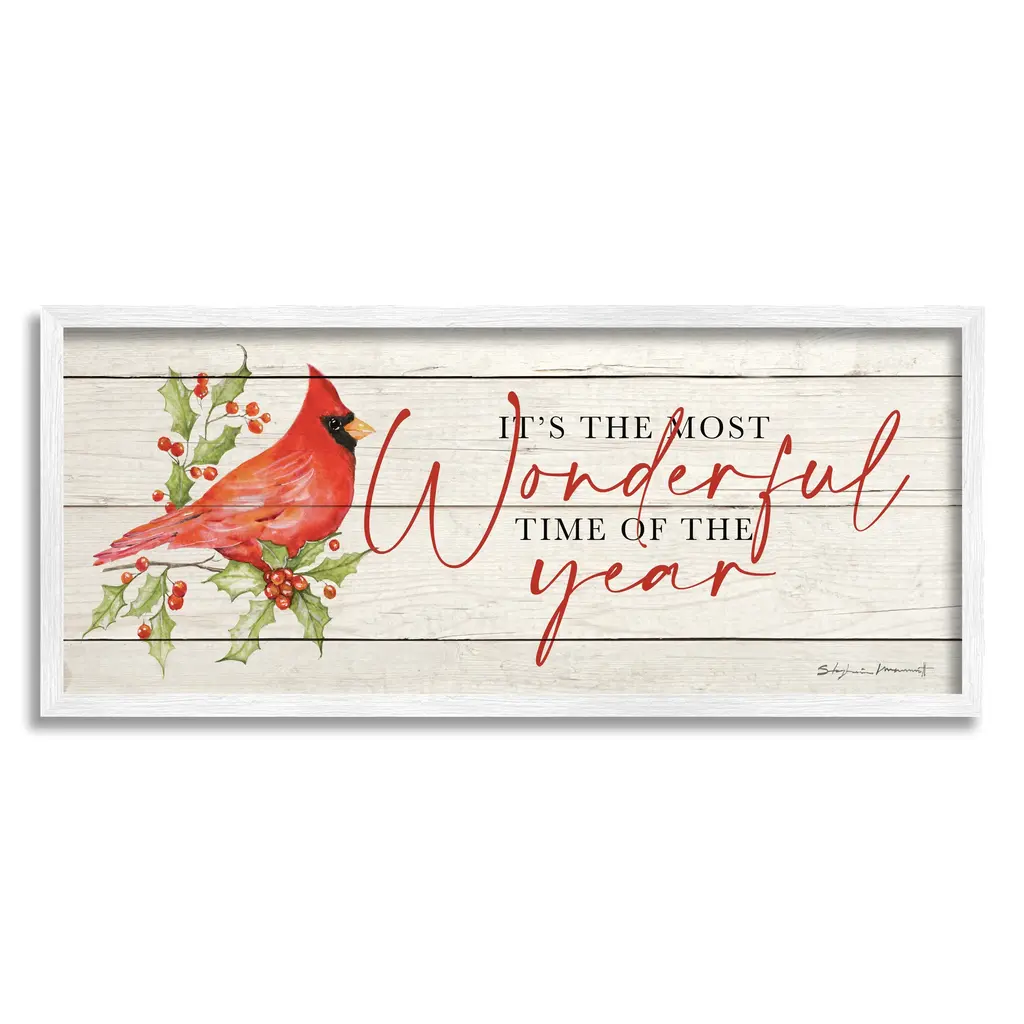 Stupell Most Wonderful Time Cardinal Framed Giclee Art By Stephanie Workman Marrott - 24 X 10 - White