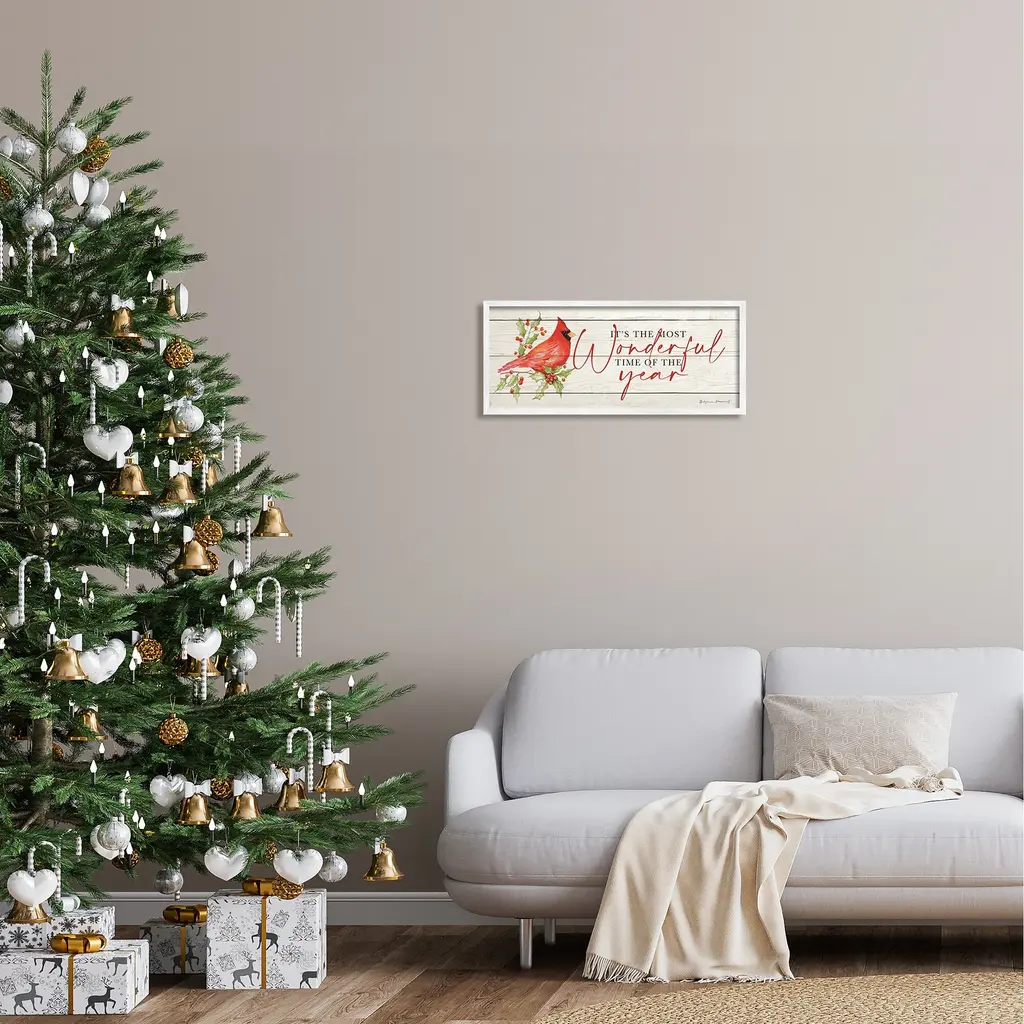 Add dimension to any room with our textured Framed Giclee Artwork. Our framed artwork is securely mounted into a 1.5-inch thick wood grain frame and ready to hang. Frames are available in three alluring styles: black, gray farmhouse and white. In addition, you should check out our oversized options if you want a statement piece. Stupell Wall Art is made in the USA.Features: Dimensions: 24 x 1.5 x 10 FramedFramed Giclee Sizes Include Standard: 24 x 1.5 x 10 Oversized: 30 x 1.5 x 13Wall Art is Ready to Hang - No Installation or Hardware Needed. For Easy Set Up Lean or Layer Artwork on Shelf or Against Wall.Our giclée prints are carefully mounted on a durable MDF backing, and then perfectly finished in a 1.5 inch thick woodgrain frame. Mounted frame colors include black, gray farmhouse and white. Made In USA.Artwork Relates To: Animal, Bird, Cardinal, Beak, Holiday, Christmas, Holly Berries, It's The Most Wonderful Time Of YearDesign by Stephanie Workman Marrott