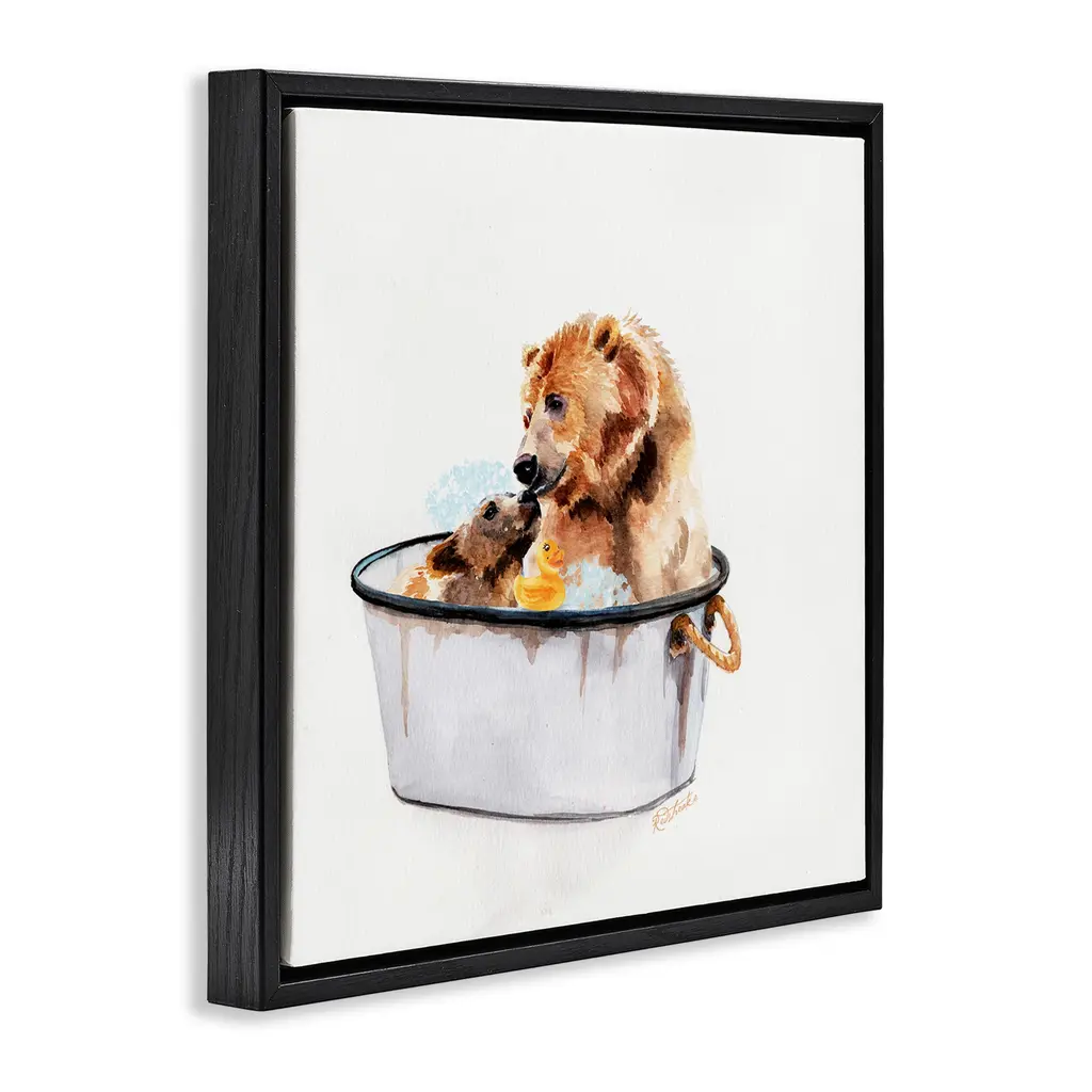 Elevate your home or office to the next level with Stupell Framed Floating Canvas Wall Art. Our premium hand-stretched canvas is mounted securely into a sturdy lightweight frame. The museum-style gap between the wrapped canvas and the box frame gives the illusion of floating artwork. Stupell Wall Art is made in the USA.Features: Dimensions: 18 x 1.7 x 18 Frame, 17 x 1.5 x 17 Canvas ArtFloating Frame Canvas Products are available in sizes 18"x18" and 25"x25". All Floating Frame Canvas Products have a 1.7" Depth.Wall Art is Ready to Hang with Hardware Free Hanging. No Installation required. For Easy Set Up Lean or Layer Artwork on Shelf or Against Wall. Artwork is Permently Fixed into the Frame.Our elevated 1.7" Thick Floating Frame is the perfect complement to our canvas style Wall Art. We use only the highest quality inks in house with industry leading printing solutions. Canvas is hand stretched over a durable wood foundation and then mounted securly into a Modern Box Frame. Made in the USA.Artwork Relates To: Bathroom, Bath, Tub, Animal, Bear, Cub, Vintage, CountryDesign by Jennifer Redstreake