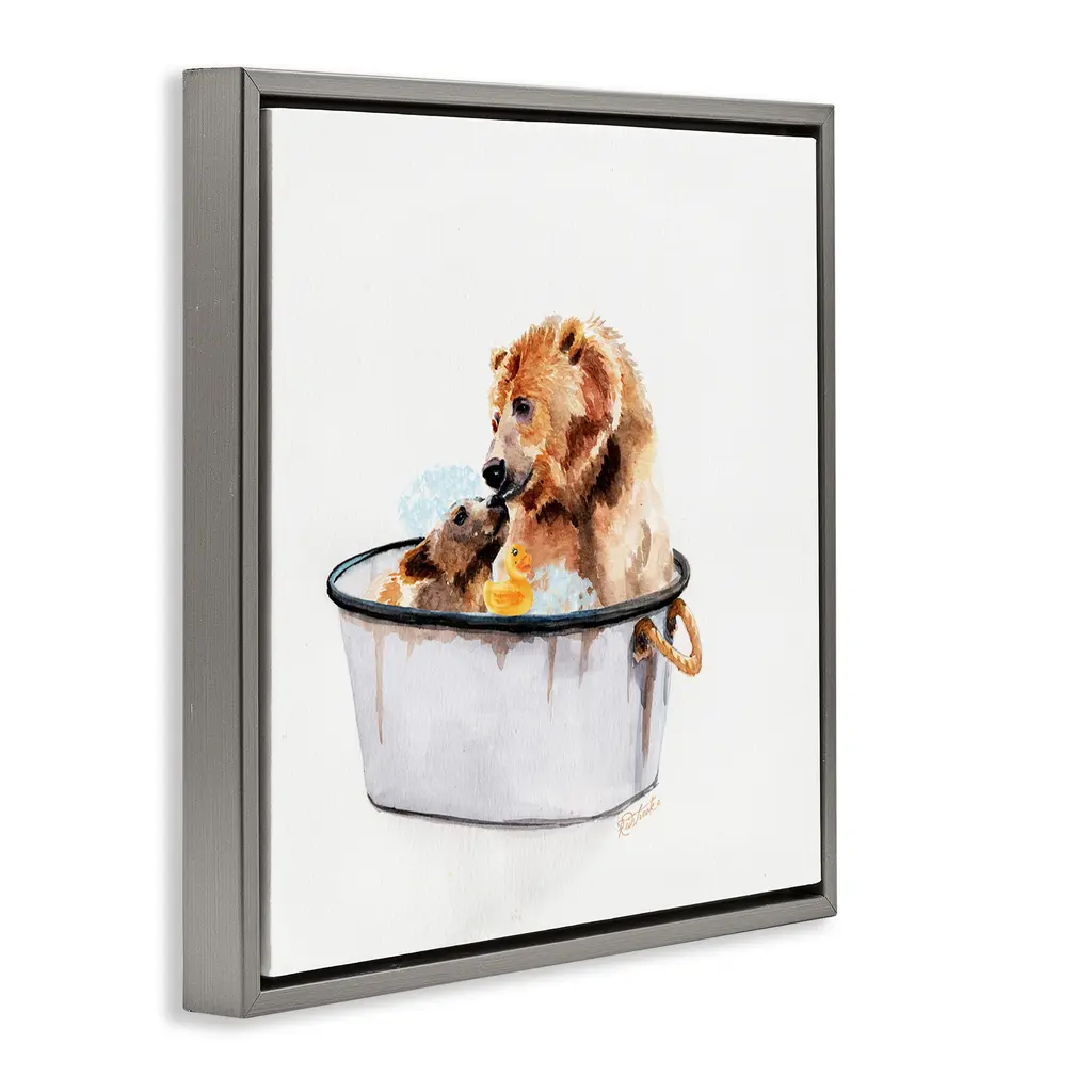 Elevate your home or office to the next level with Stupell Framed Floating Canvas Wall Art. Our premium hand-stretched canvas is mounted securely into a sturdy lightweight frame. The museum-style gap between the wrapped canvas and the box frame gives the illusion of floating artwork. Stupell Wall Art is made in the USA.Features: Dimensions: 18 x 1.7 x 18 Frame, 17 x 1.5 x 17 Canvas ArtFloating Frame Canvas Products are available in sizes 18"x18" and 25"x25". All Floating Frame Canvas Products have a 1.7" Depth.Wall Art is Ready to Hang with Hardware Free Hanging. No Installation required. For Easy Set Up Lean or Layer Artwork on Shelf or Against Wall. Artwork is Permently Fixed into the Frame.Our elevated 1.7" Thick Floating Frame is the perfect complement to our canvas style Wall Art. We use only the highest quality inks in house with industry leading printing solutions. Canvas is hand stretched over a durable wood foundation and then mounted securly into a Modern Box Frame. Made in the USA.Artwork Relates To: Bathroom, Bath, Tub, Animal, Bear, Cub, Vintage, CountryDesign by Jennifer Redstreake