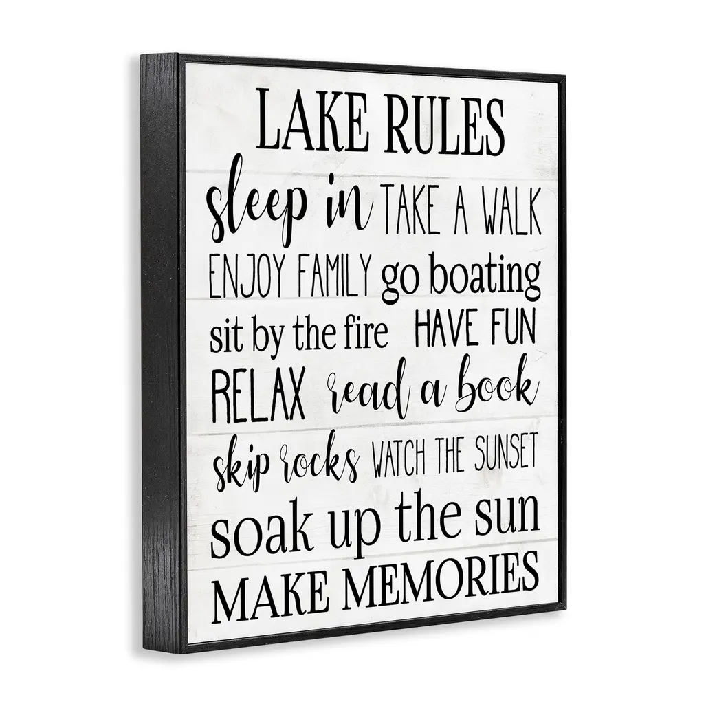 Stupell Motivational Lake Rules Sign Text Styles Black White Framed Giclee Texturized Art By Daphne Polselli - 16 X 20 - Black