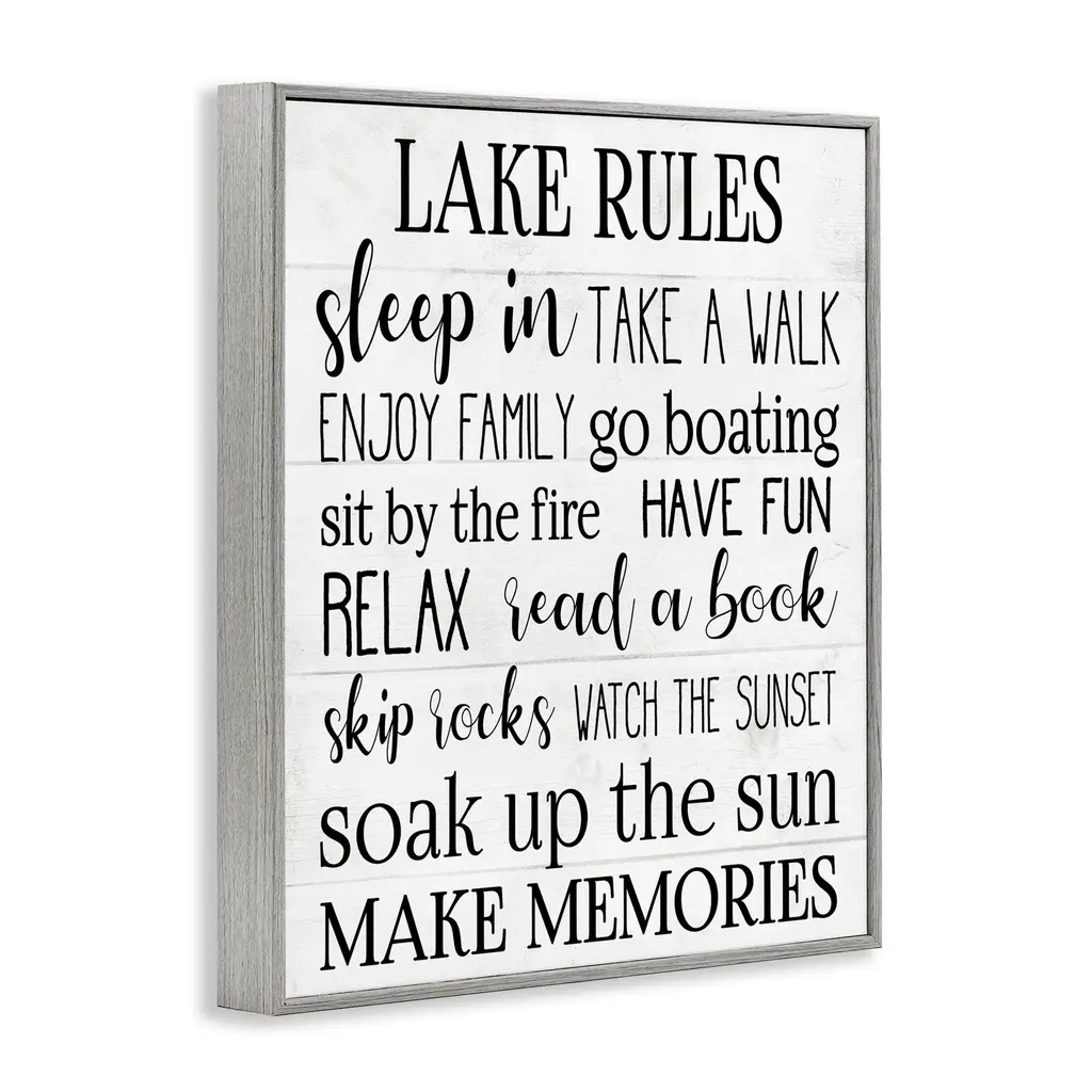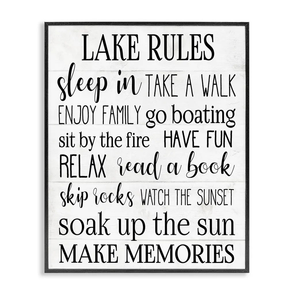 Stupell Motivational Lake Rules Sign Text Styles Black White Framed Giclee Texturized Art By Daphne Polselli - 24 X 30 - Grey