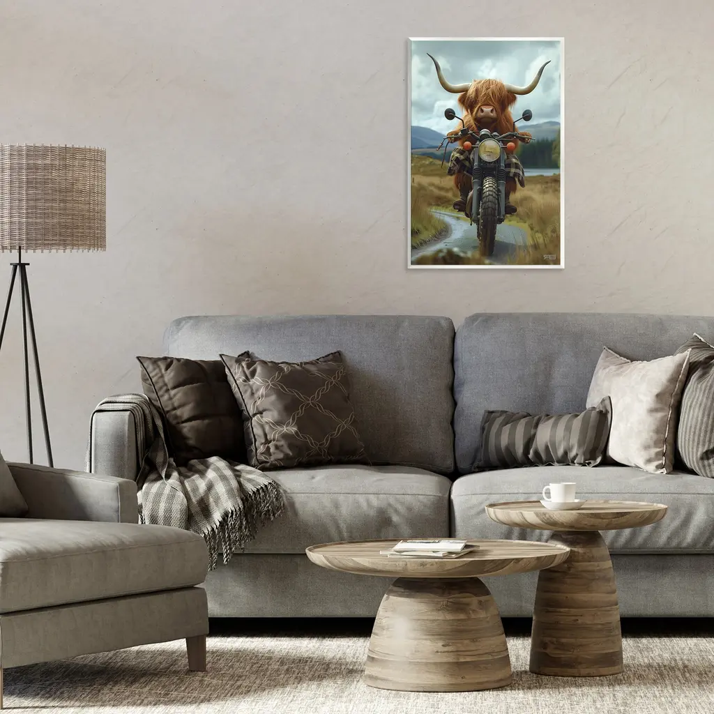 Our wall plaques start as high-quality lithograph prints mounted on durable 0.5-inch thick MDF wood. Each piece is hand finished and comes with a fresh layer of white foil on the sides to give it a crisp, clean look. Plaques arrive ready to hang without installation and come with removable plastic corners to keep them from damage in transit. Stupell Wall Art is made in the USA.Features: Dimensions: 10 x 0.5 x 15 InchesWall Plaque Product Sizes Include 10"x15" and 13"x19". All wall plaque products have a 0.5" Depth. Wall Art is Ready to Hang with Hardware Free Hanging. No installation required. For Easy Set Up Lean or Layer Artwork on Shelf or Against Wall.All of our wall plaques start off as high quality lithograph prints that are then mounted on durable 0.5 inch thick MDF wood. Each piece is hand finished and comes with a fresh layer of foil on the sides to give it a crisp clean look. Made In USA.Artwork Relates To: Animal, Cattle, Cow, Mammal, Motorcycle, Transportation, Vehicle, LonghornDesign by Roozbeh Bahramali