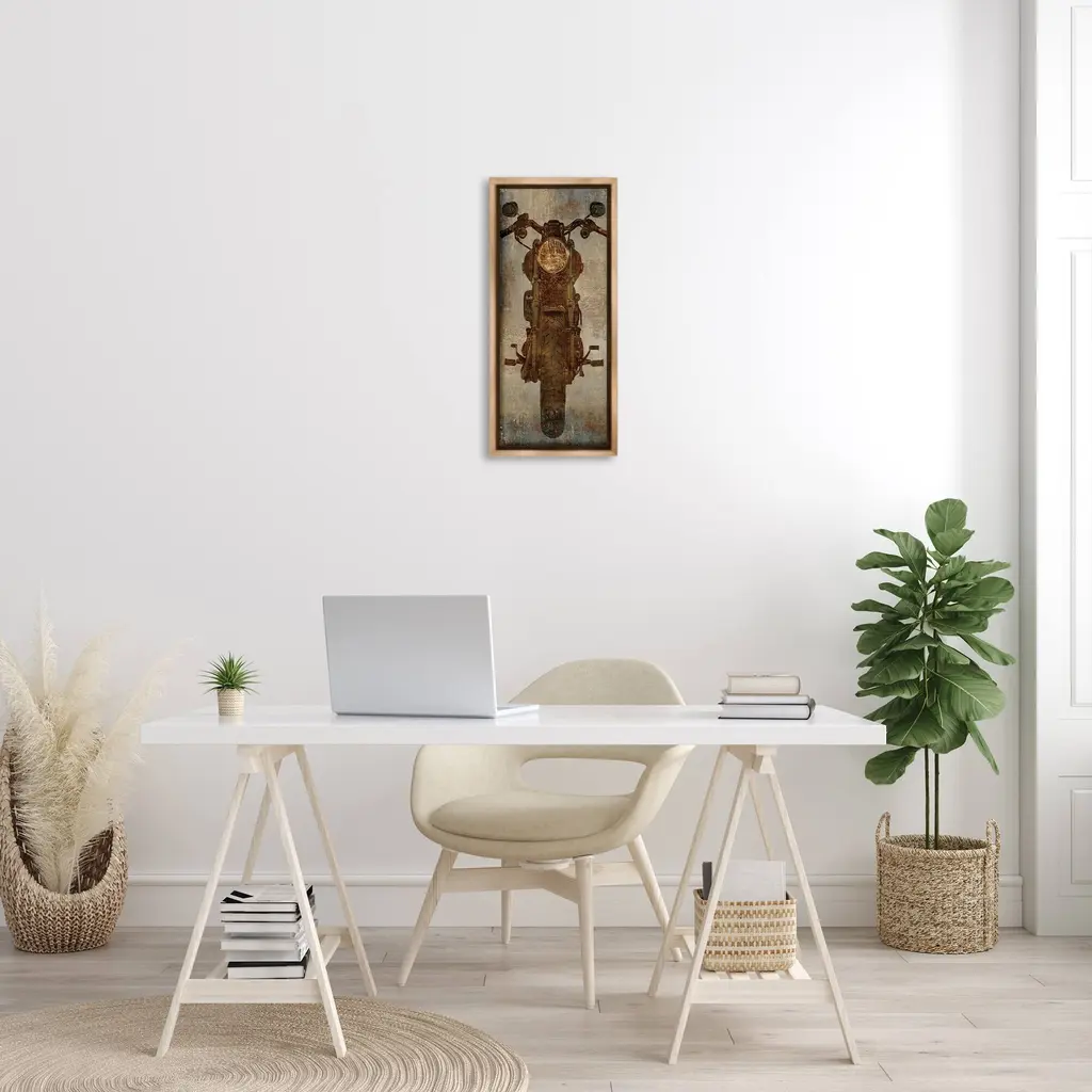 Elevate your home or office to the next level with Stupell Framed Floating Canvas Wall Art. Our premium hand-stretched canvas is mounted securely into a sturdy lightweight frame. The museum-style gap between the wrapped canvas and the box frame gives the illusion of floating artwork. Stupell Wall Art is made in the USA.Features: Dimensions: 11 x 1.7 x 25 Frame, 10 x 1.5 x 24 Canvas ArtFloating Frame Canvas Products are available in sizes 11"x25" and 14"x31". All Floating Frame Canvas Products have a 1.7" Depth.Wall Art is Ready to Hang with Hardware Free Hanging. No Installation required. For Easy Set Up Lean or Layer Artwork on Shelf or Against Wall. Artwork is Permently Fixed into the Frame.Our elevated 1.7" Thick Floating Frame is the perfect complement to our canvas style Wall Art. We use only the highest quality inks in house with industry leading printing solutions. Canvas is hand stretched over a durable wood foundation and then mounted securly into a Modern Box Frame. Made in the USA.Artwork Relates To: Vintage, Motorcycle, Abstract, Rustic, VehicleDesign by Dylan Mattews
