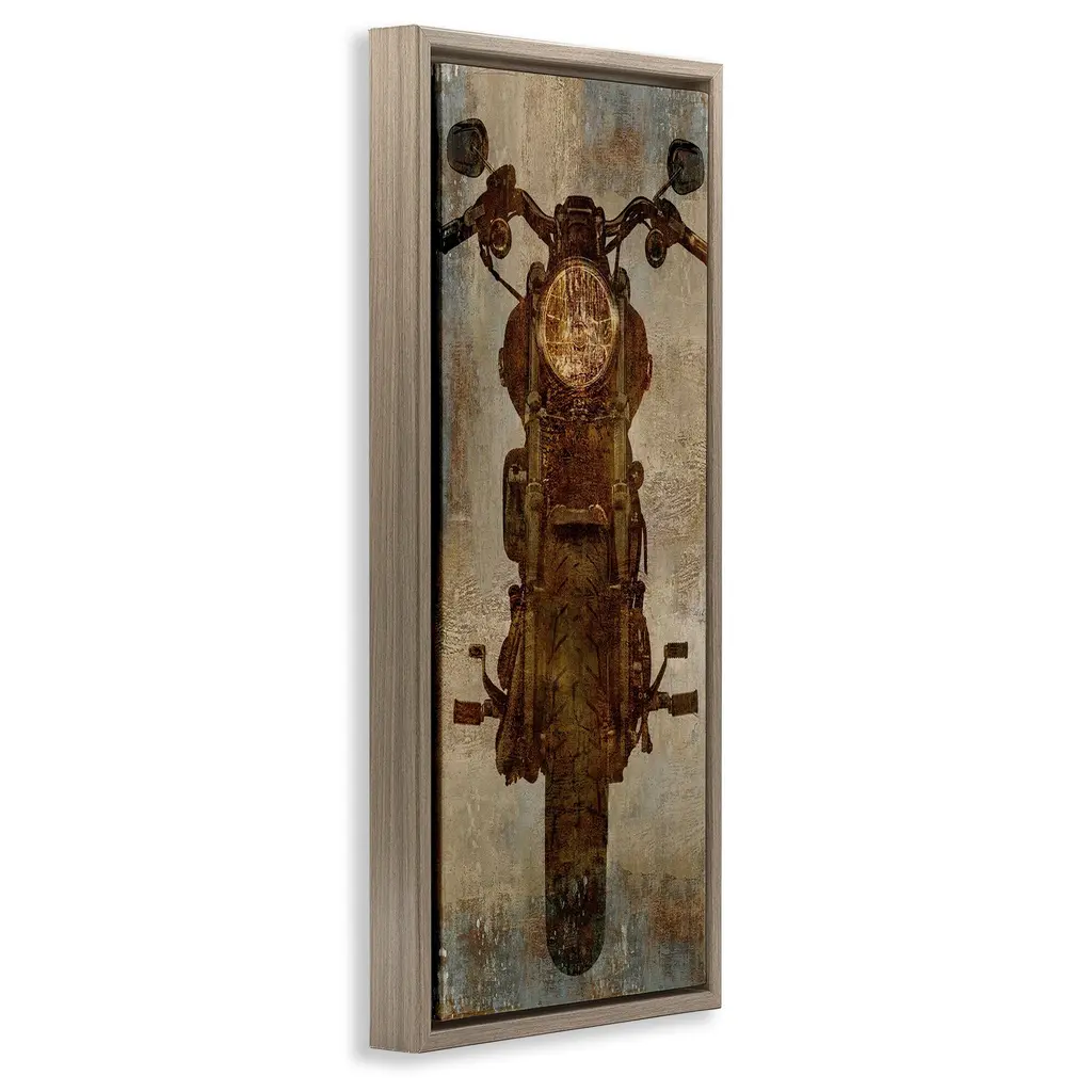 Elevate your home or office to the next level with Stupell Framed Floating Canvas Wall Art. Our premium hand-stretched canvas is mounted securely into a sturdy lightweight frame. The museum-style gap between the wrapped canvas and the box frame gives the illusion of floating artwork. Stupell Wall Art is made in the USA.Features: Dimensions: 11 x 1.7 x 25 Frame, 10 x 1.5 x 24 Canvas ArtFloating Frame Canvas Products are available in sizes 11"x25" and 14"x31". All Floating Frame Canvas Products have a 1.7" Depth.Wall Art is Ready to Hang with Hardware Free Hanging. No Installation required. For Easy Set Up Lean or Layer Artwork on Shelf or Against Wall. Artwork is Permently Fixed into the Frame.Our elevated 1.7" Thick Floating Frame is the perfect complement to our canvas style Wall Art. We use only the highest quality inks in house with industry leading printing solutions. Canvas is hand stretched over a durable wood foundation and then mounted securly into a Modern Box Frame. Made in the USA.Artwork Relates To: Vintage, Motorcycle, Abstract, Rustic, VehicleDesign by Dylan Mattews