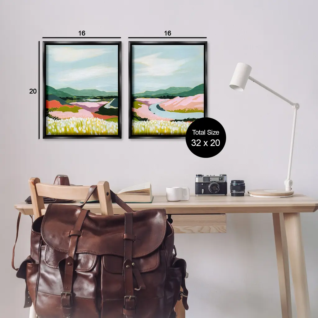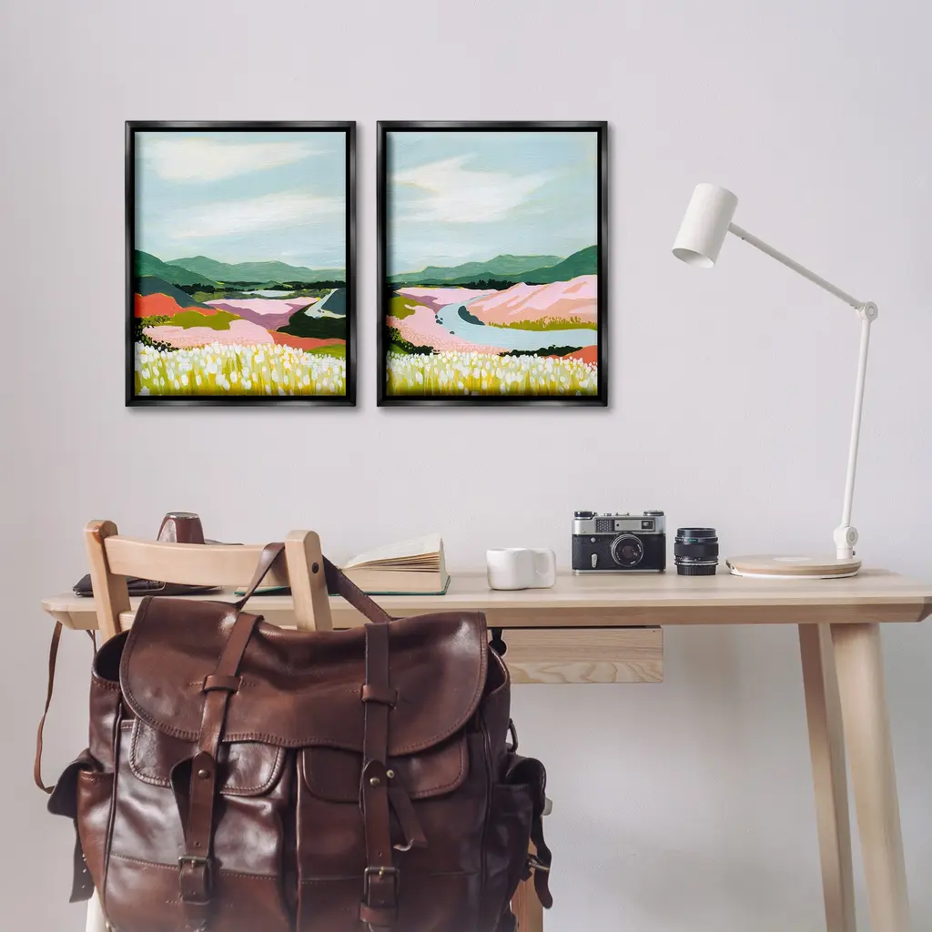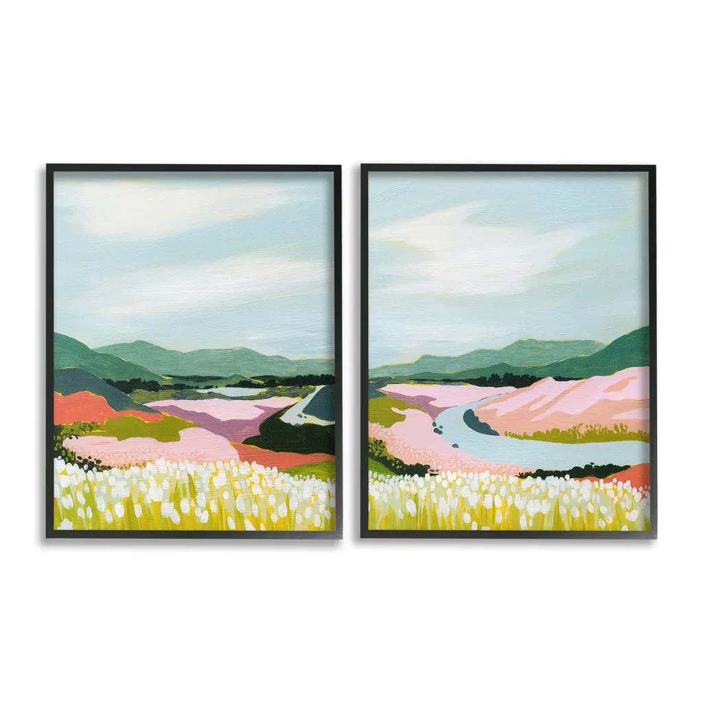 Elevate your home or office to the next level with Stupell Framed Floating Canvas Wall Art. Our premium hand-stretched canvas is mounted securely into a sturdy lightweight frame. The museum-style gap between the wrapped canvas and the box frame gives the illusion of floating artwork. Stupell Wall Art is made in the USA.Features: Dimensions: 2 Piece Set, Each Frame is 17 x 1.7 x 21Two Piece Floater Framed Canvas are available as 17x21 or 25x31 Panels. All Floater Frame Products have a 1.7" Depth.Wall Art is Ready to Hang with Hardware Free Hanging. No Installation required. For Easy Set Up Lean or Layer Artwork on Shelf or Against Wall. Artwork is Permently Fixed into the Frame.Our elevated 1.7" Thick Floating Frame is the perfect complement to our canvas style Wall Art. We use only the highest quality inks in house with industry leading printing solutions. Canvas is hand stretched over a durable wood foundation and then mounted securly into a Modern Box Frame. Made in the USA.Artwork Relates To: Painting, Field, Grassland, Nature, Modern, Meadow, Countryside, Abstract, Landscape, River, MountainDesign by Grace Popp