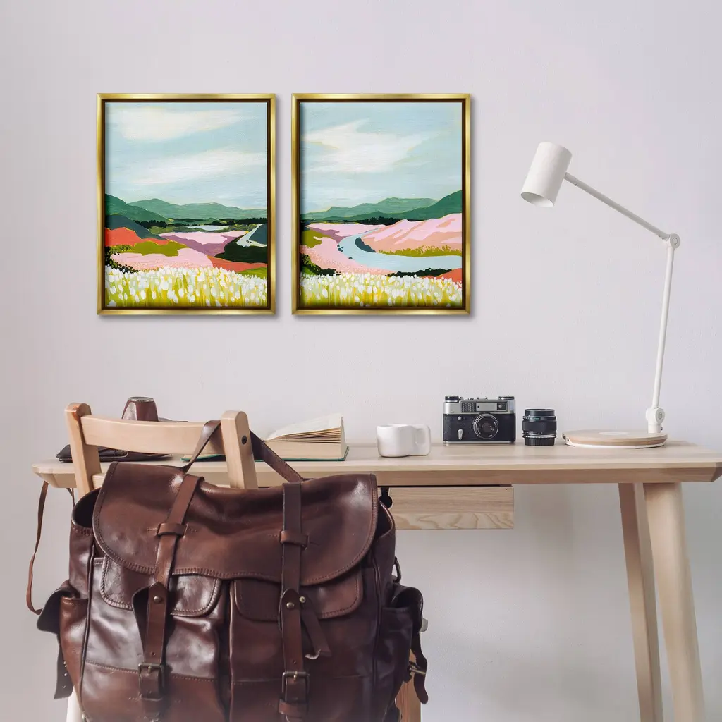 Elevate your home or office to the next level with Stupell Framed Floating Canvas Wall Art. Our premium hand-stretched canvas is mounted securely into a sturdy lightweight frame. The museum-style gap between the wrapped canvas and the box frame gives the illusion of floating artwork. Stupell Wall Art is made in the USA.Features: Dimensions: 2 Piece Set, Each Frame is 17 x 1.7 x 21Two Piece Floater Framed Canvas are available as 17x21 or 25x31 Panels. All Floater Frame Products have a 1.7" Depth.Wall Art is Ready to Hang with Hardware Free Hanging. No Installation required. For Easy Set Up Lean or Layer Artwork on Shelf or Against Wall. Artwork is Permently Fixed into the Frame.Our elevated 1.7" Thick Floating Frame is the perfect complement to our canvas style Wall Art. We use only the highest quality inks in house with industry leading printing solutions. Canvas is hand stretched over a durable wood foundation and then mounted securly into a Modern Box Frame. Made in the USA.Artwork Relates To: Painting, Field, Grassland, Nature, Modern, Meadow, Countryside, Abstract, Landscape, River, MountainDesign by Grace Popp