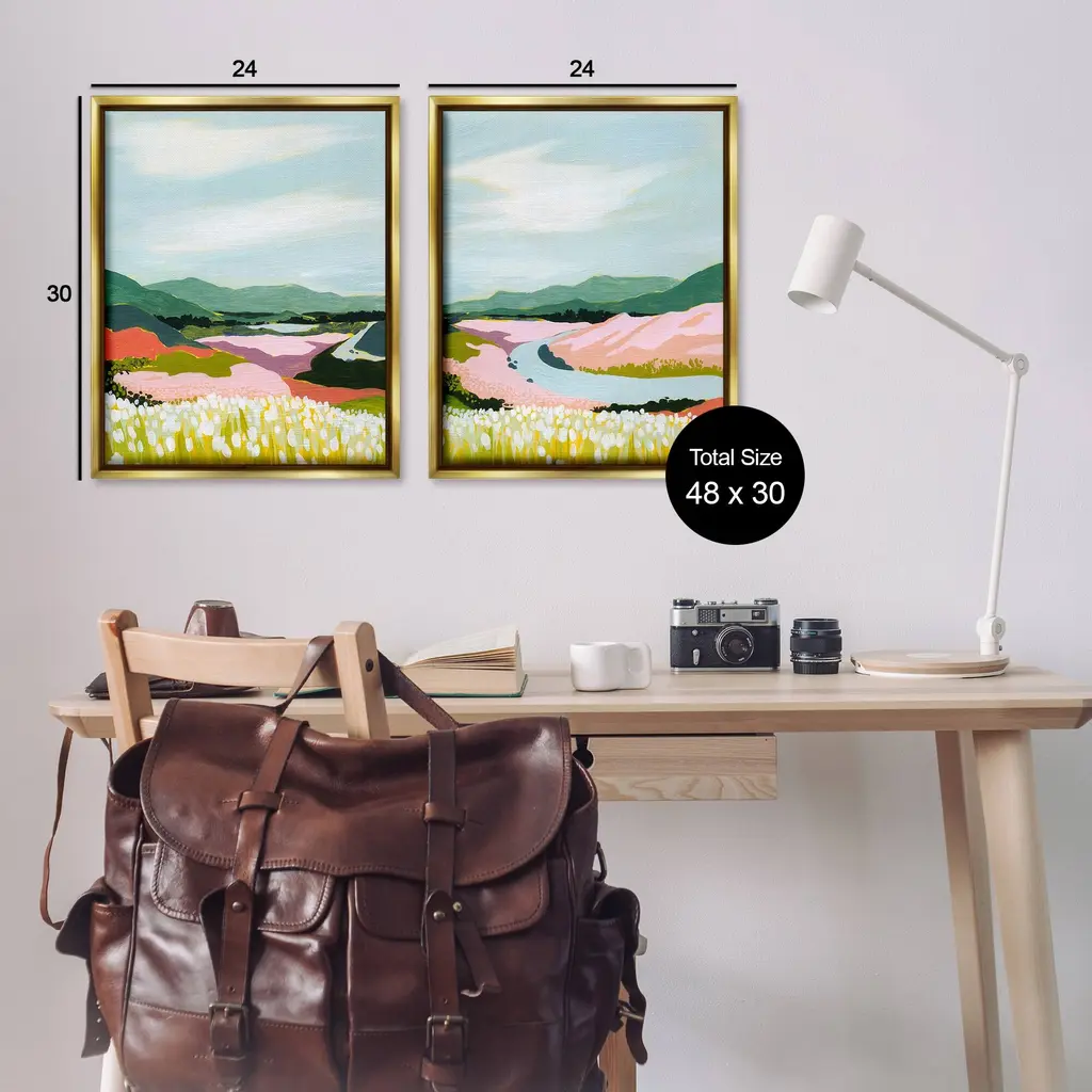 Elevate your home or office to the next level with Stupell Framed Floating Canvas Wall Art. Our premium hand-stretched canvas is mounted securely into a sturdy lightweight frame. The museum-style gap between the wrapped canvas and the box frame gives the illusion of floating artwork. Stupell Wall Art is made in the USA.Features: Dimensions: 2 Piece Set, Each Frame is 17 x 1.7 x 21Two Piece Floater Framed Canvas are available as 17x21 or 25x31 Panels. All Floater Frame Products have a 1.7" Depth.Wall Art is Ready to Hang with Hardware Free Hanging. No Installation required. For Easy Set Up Lean or Layer Artwork on Shelf or Against Wall. Artwork is Permently Fixed into the Frame.Our elevated 1.7" Thick Floating Frame is the perfect complement to our canvas style Wall Art. We use only the highest quality inks in house with industry leading printing solutions. Canvas is hand stretched over a durable wood foundation and then mounted securly into a Modern Box Frame. Made in the USA.Artwork Relates To: Painting, Field, Grassland, Nature, Modern, Meadow, Countryside, Abstract, Landscape, River, MountainDesign by Grace Popp