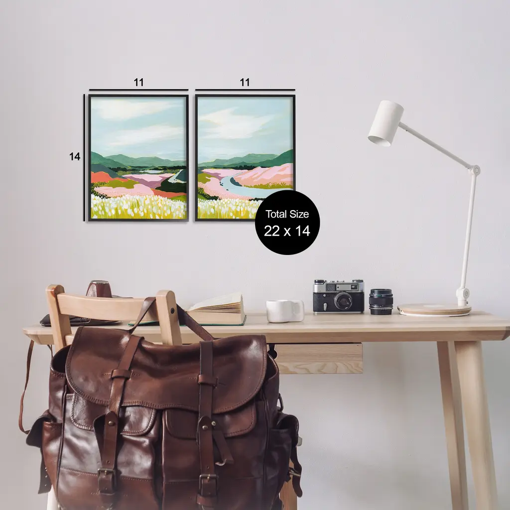 Fill any space in your home or office with our Framed Wall Art Sets. Our framed artwork is securely mounted into a 1.5-inch thick wood grain frame and ready to hang. Frames are available in three alluring styles: black, gray farmhouse and white. Stupell Wall Art is made in the USA.Features: Dimensions: 2 Piece Set, Each Panel is 11 x 1.5 x 14 FramedTwo Piece Framed Giclee Sets are available as 11"x14", 16"x20" or 24"x30" Panels. All Framed Giclee Products have a 1.5" Depth.Wall Art is Ready to Hang with Hardware Free Hanging. No installation required. For Easy Set Up Lean or Layer Artwork on Shelf or Against Wall.Curated Wall Art Sets make it easy for you complete the theme for any room. Our giclée prints are carefully mounted on a durable MDF backing, and then perfectly finished in a 1.5 inch thick woodgrain frame. Mounted frame colors include black, gray farmhouse and white. Made In USA.Artwork Relates To: Painting, Field, Grassland, Nature, Modern, Meadow, Countryside, Abstract, Landscape, River, MountainDesign by Grace Popp