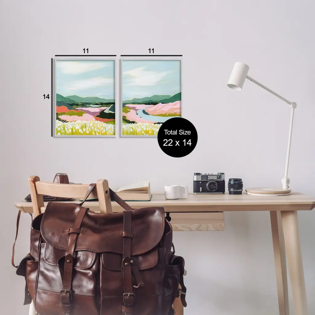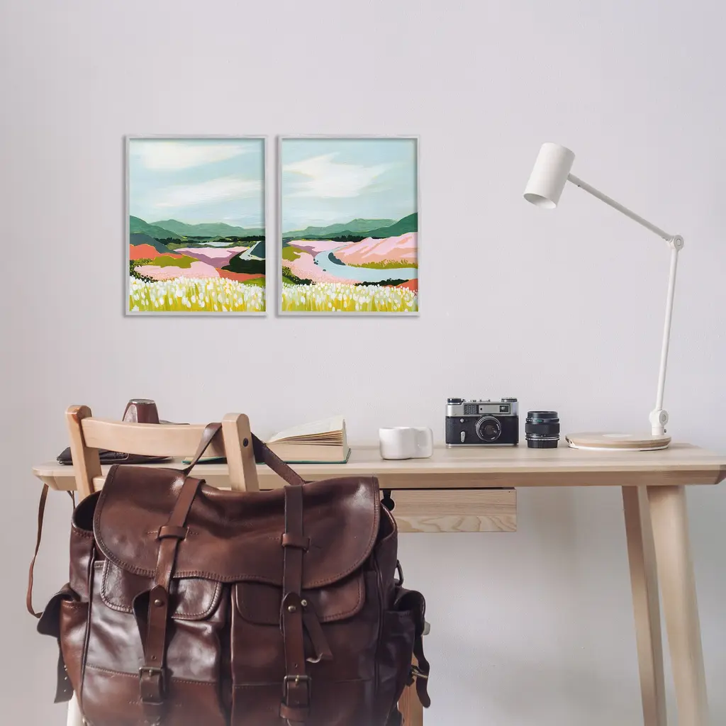 Fill any space in your home or office with our Framed Wall Art Sets. Our framed artwork is securely mounted into a 1.5-inch thick wood grain frame and ready to hang. Frames are available in three alluring styles: black, gray farmhouse and white. Stupell Wall Art is made in the USA.Features: Dimensions: 2 Piece Set, Each Panel is 11 x 1.5 x 14 FramedTwo Piece Framed Giclee Sets are available as 11"x14", 16"x20" or 24"x30" Panels. All Framed Giclee Products have a 1.5" Depth.Wall Art is Ready to Hang with Hardware Free Hanging. No installation required. For Easy Set Up Lean or Layer Artwork on Shelf or Against Wall.Curated Wall Art Sets make it easy for you complete the theme for any room. Our giclée prints are carefully mounted on a durable MDF backing, and then perfectly finished in a 1.5 inch thick woodgrain frame. Mounted frame colors include black, gray farmhouse and white. Made In USA.Artwork Relates To: Painting, Field, Grassland, Nature, Modern, Meadow, Countryside, Abstract, Landscape, River, MountainDesign by Grace Popp