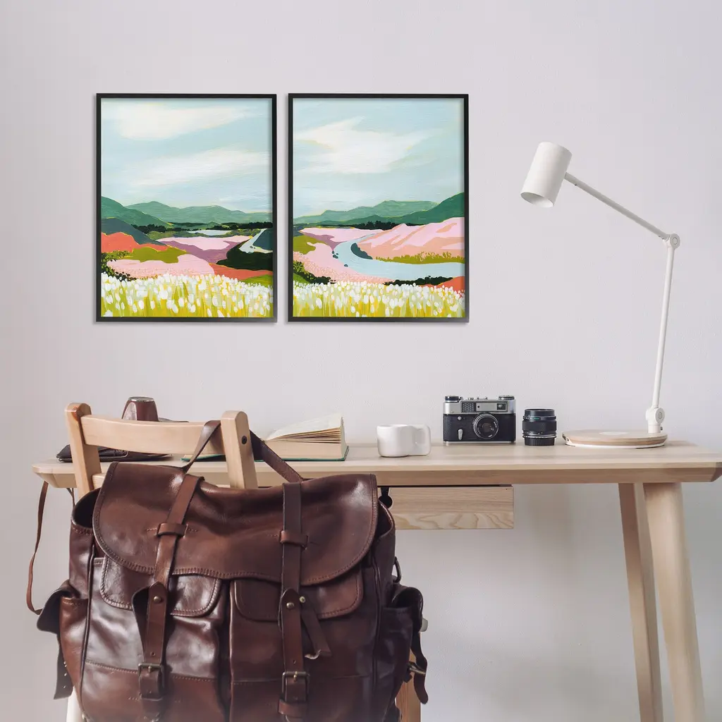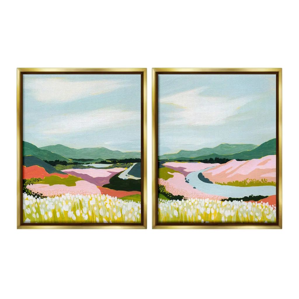 Fill any space in your home or office with our Framed Wall Art Sets. Our framed artwork is securely mounted into a 1.5-inch thick wood grain frame and ready to hang. Frames are available in three alluring styles: black, gray farmhouse and white. Stupell Wall Art is made in the USA.Features: Dimensions: 2 Piece Set, Each Panel is 11 x 1.5 x 14 FramedTwo Piece Framed Giclee Sets are available as 11"x14", 16"x20" or 24"x30" Panels. All Framed Giclee Products have a 1.5" Depth.Wall Art is Ready to Hang with Hardware Free Hanging. No installation required. For Easy Set Up Lean or Layer Artwork on Shelf or Against Wall.Curated Wall Art Sets make it easy for you complete the theme for any room. Our giclée prints are carefully mounted on a durable MDF backing, and then perfectly finished in a 1.5 inch thick woodgrain frame. Mounted frame colors include black, gray farmhouse and white. Made In USA.Artwork Relates To: Painting, Field, Grassland, Nature, Modern, Meadow, Countryside, Abstract, Landscape, River, MountainDesign by Grace Popp