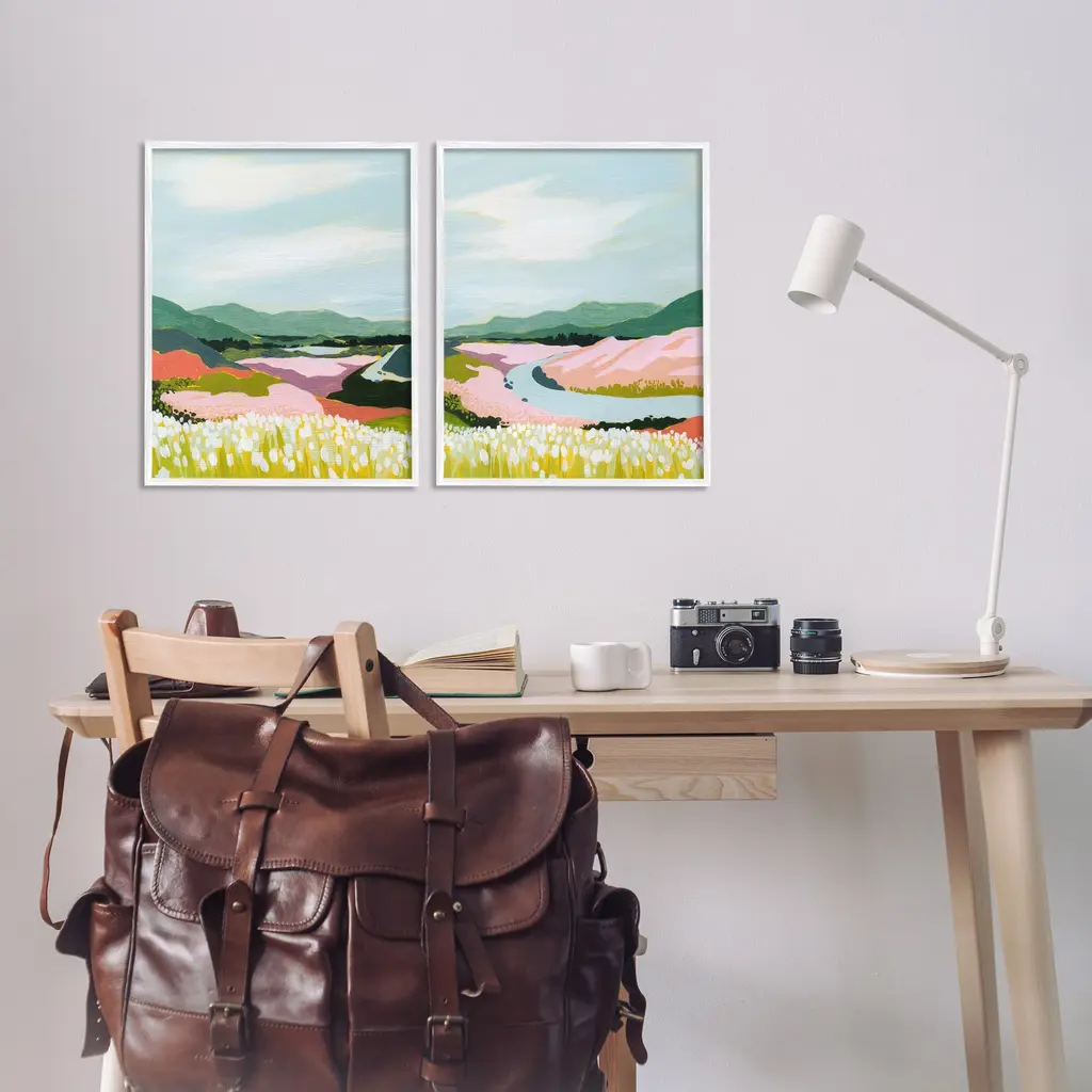Fill any space in your home or office with our Framed Wall Art Sets. Our framed artwork is securely mounted into a 1.5-inch thick wood grain frame and ready to hang. Frames are available in three alluring styles: black, gray farmhouse and white. Stupell Wall Art is made in the USA.Features: Dimensions: 2 Piece Set, Each Panel is 11 x 1.5 x 14 FramedTwo Piece Framed Giclee Sets are available as 11"x14", 16"x20" or 24"x30" Panels. All Framed Giclee Products have a 1.5" Depth.Wall Art is Ready to Hang with Hardware Free Hanging. No installation required. For Easy Set Up Lean or Layer Artwork on Shelf or Against Wall.Curated Wall Art Sets make it easy for you complete the theme for any room. Our giclée prints are carefully mounted on a durable MDF backing, and then perfectly finished in a 1.5 inch thick woodgrain frame. Mounted frame colors include black, gray farmhouse and white. Made In USA.Artwork Relates To: Painting, Field, Grassland, Nature, Modern, Meadow, Countryside, Abstract, Landscape, River, MountainDesign by Grace Popp