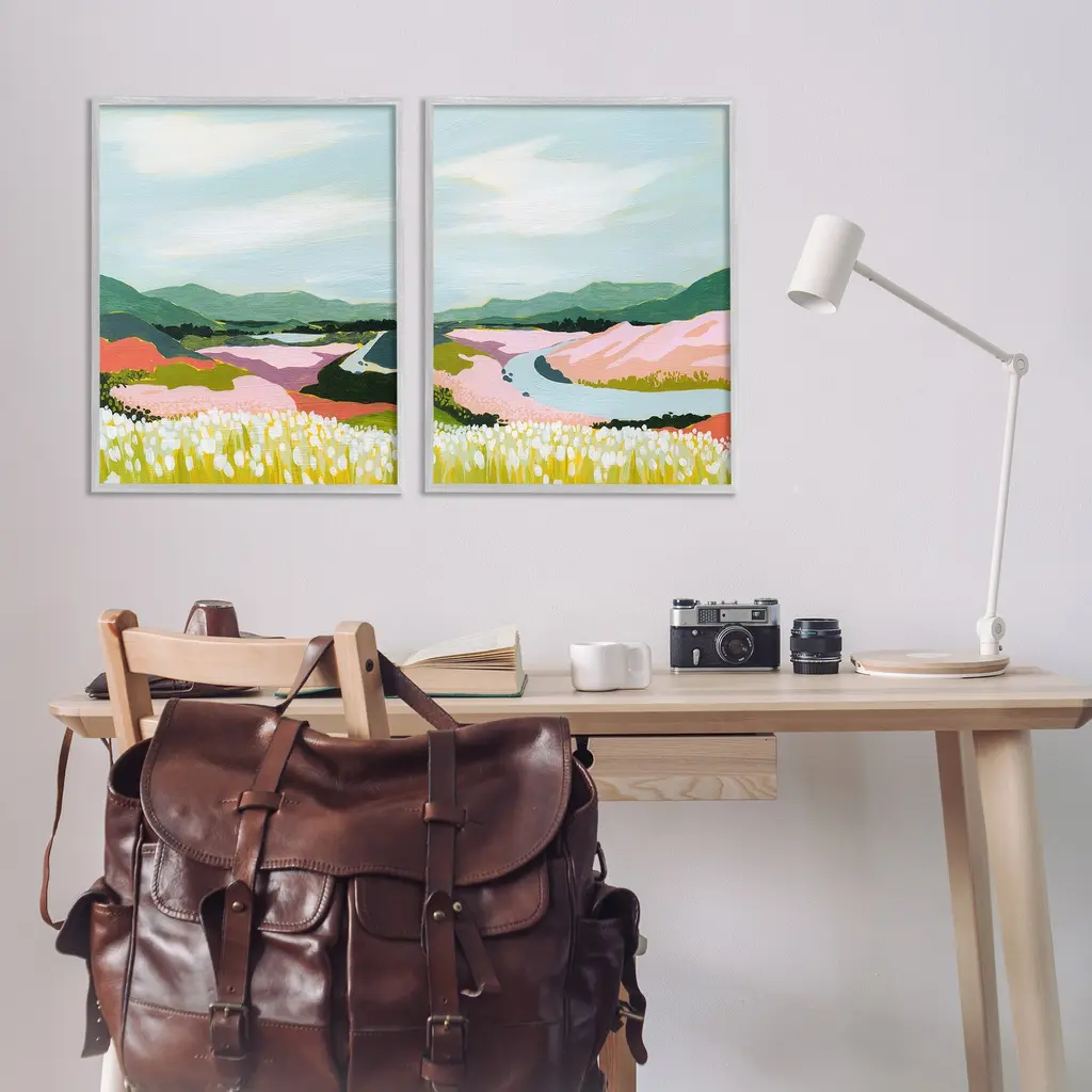 Fill any space in your home or office with our Framed Wall Art Sets. Our framed artwork is securely mounted into a 1.5-inch thick wood grain frame and ready to hang. Frames are available in three alluring styles: black, gray farmhouse and white. Stupell Wall Art is made in the USA.Features: Dimensions: 2 Piece Set, Each Panel is 11 x 1.5 x 14 FramedTwo Piece Framed Giclee Sets are available as 11"x14", 16"x20" or 24"x30" Panels. All Framed Giclee Products have a 1.5" Depth.Wall Art is Ready to Hang with Hardware Free Hanging. No installation required. For Easy Set Up Lean or Layer Artwork on Shelf or Against Wall.Curated Wall Art Sets make it easy for you complete the theme for any room. Our giclée prints are carefully mounted on a durable MDF backing, and then perfectly finished in a 1.5 inch thick woodgrain frame. Mounted frame colors include black, gray farmhouse and white. Made In USA.Artwork Relates To: Painting, Field, Grassland, Nature, Modern, Meadow, Countryside, Abstract, Landscape, River, MountainDesign by Grace Popp