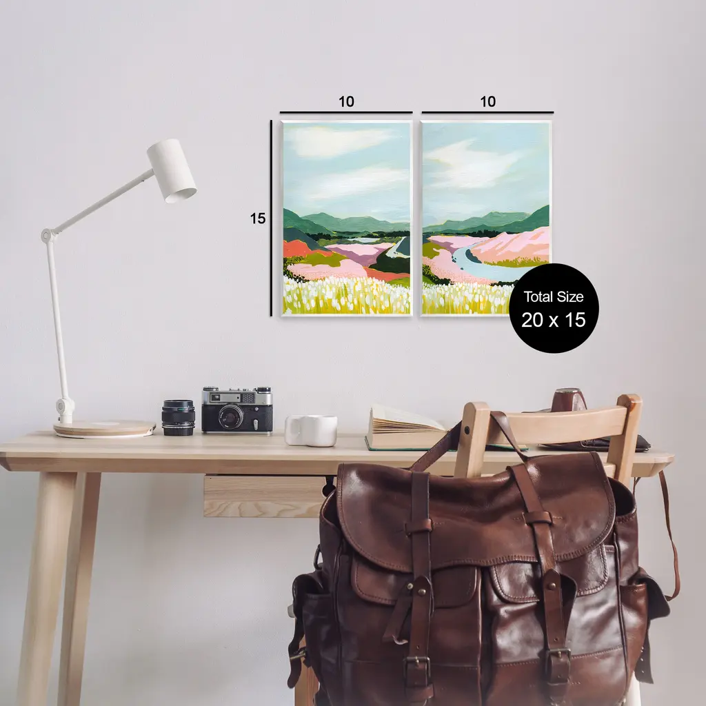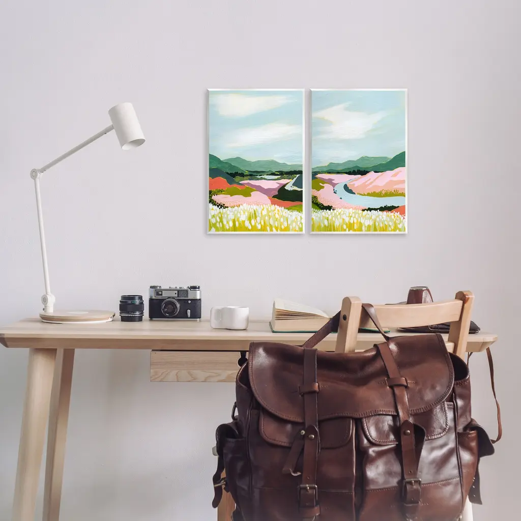 Fill any space with Stupell Wall Art Sets. Our wall plaques start as high-quality lithograph prints mounted on durable 0.5-inch thick MDF wood. Each piece is hand finished and comes with a fresh layer of white foil on the sides to give it a crisp, clean look. Plaques arrive ready to hang without installation and come with removable plastic corners to keep them from damage in transit. Stupell Wall Art is made in the USA.Features: Dimensions: 2 Piece Set, Each Panel is 10 x 0.5 x 15 InchesTwo Piece Wall Plaque Sets are available as 10"x15" or 13"x19" Panels. All Wall Art Plaques have a 0.5" Depth.Wall Art is Ready to Hang with Hardware Free Hanging. No installation required. For Easy Set Up Lean or Layer Artwork on Shelf or Against Wall.All of our wall plaques start off as high quality lithograph prints that are then mounted on durable 0.5 inch thick MDF wood. Each piece is hand finished and comes with a fresh layer of foil on the sides to give it a crisp clean look. Made In USA.Artwork Relates To: Painting, Field, Grassland, Nature, Modern, Meadow, Countryside, Abstract, Landscape, River, MountainDesign by Grace Popp