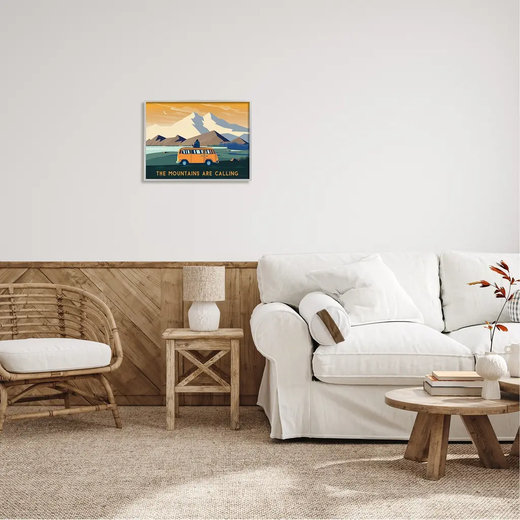 Stupell Mountains Are Calling Bold Orange Van Travel Explore Quote Framed Wall Art - 20 X 16 - Grey