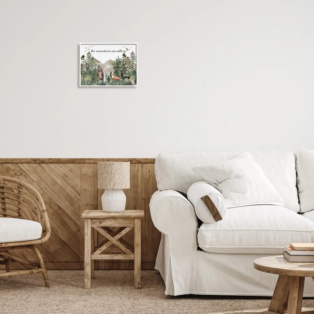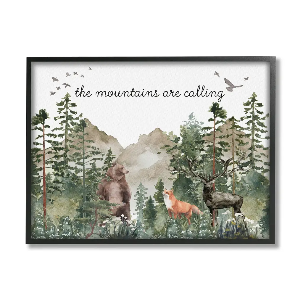 Stupell Mountains Are Calling Wilderness Animals Woodlands Trees Framed Wall Art - Green - 14 X 11 - White